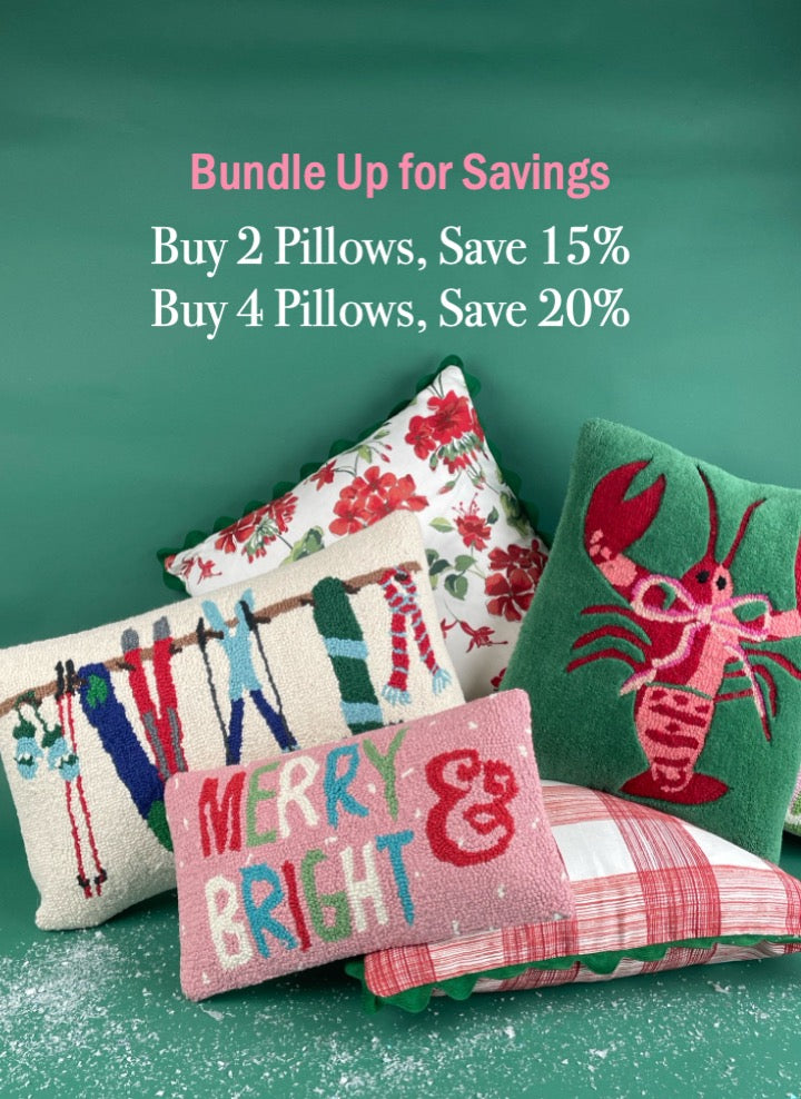 Pink Ornament Hooked-Wool Christmas Throw Pillow with Pom Poms
