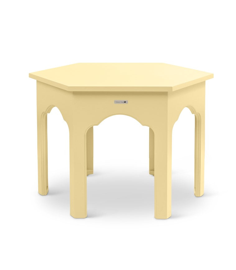 Inspired by a recent journey to Morocco, the Tangiers Coffee Table features arched accents that offer a delicious taste of the exotic. The hexagonal top of the Tangiers Coffee Table has a great deal of space for cool cocktails as well as a slew of gorgeous design books. Available in Six Standard Finishes or specify any Benjamin Moore, Sherwin-Williams, or Farrow & Ball paint color for your own unique finish. To order this piece in a custom color, Click Here.
