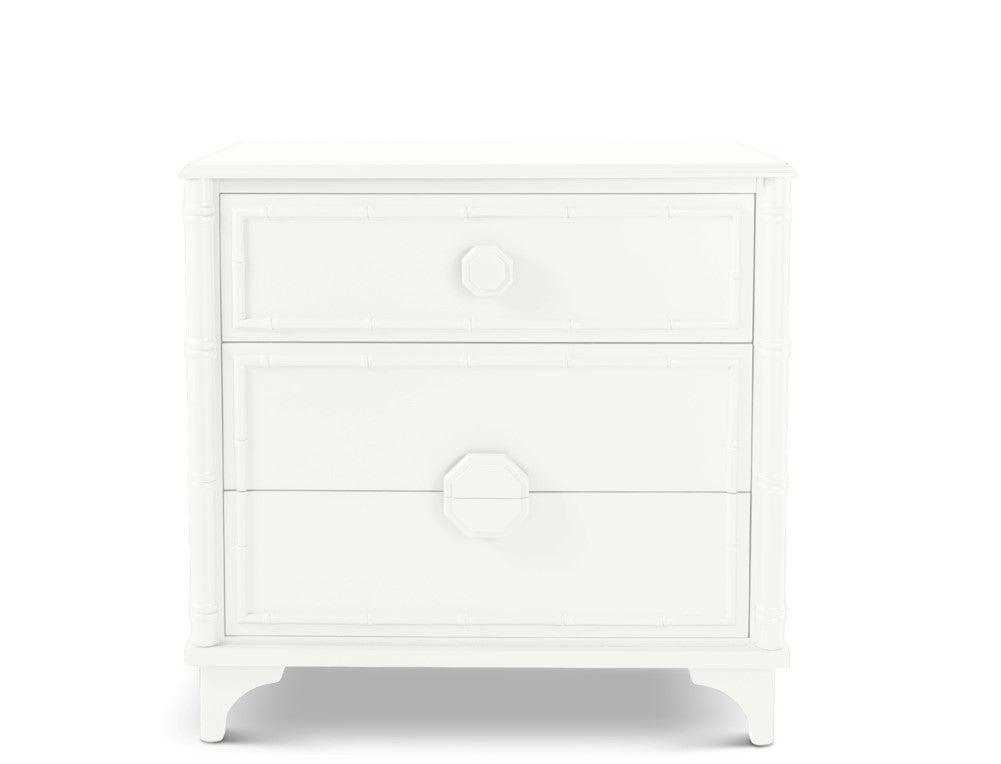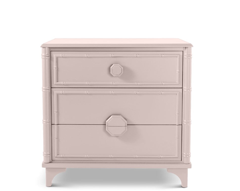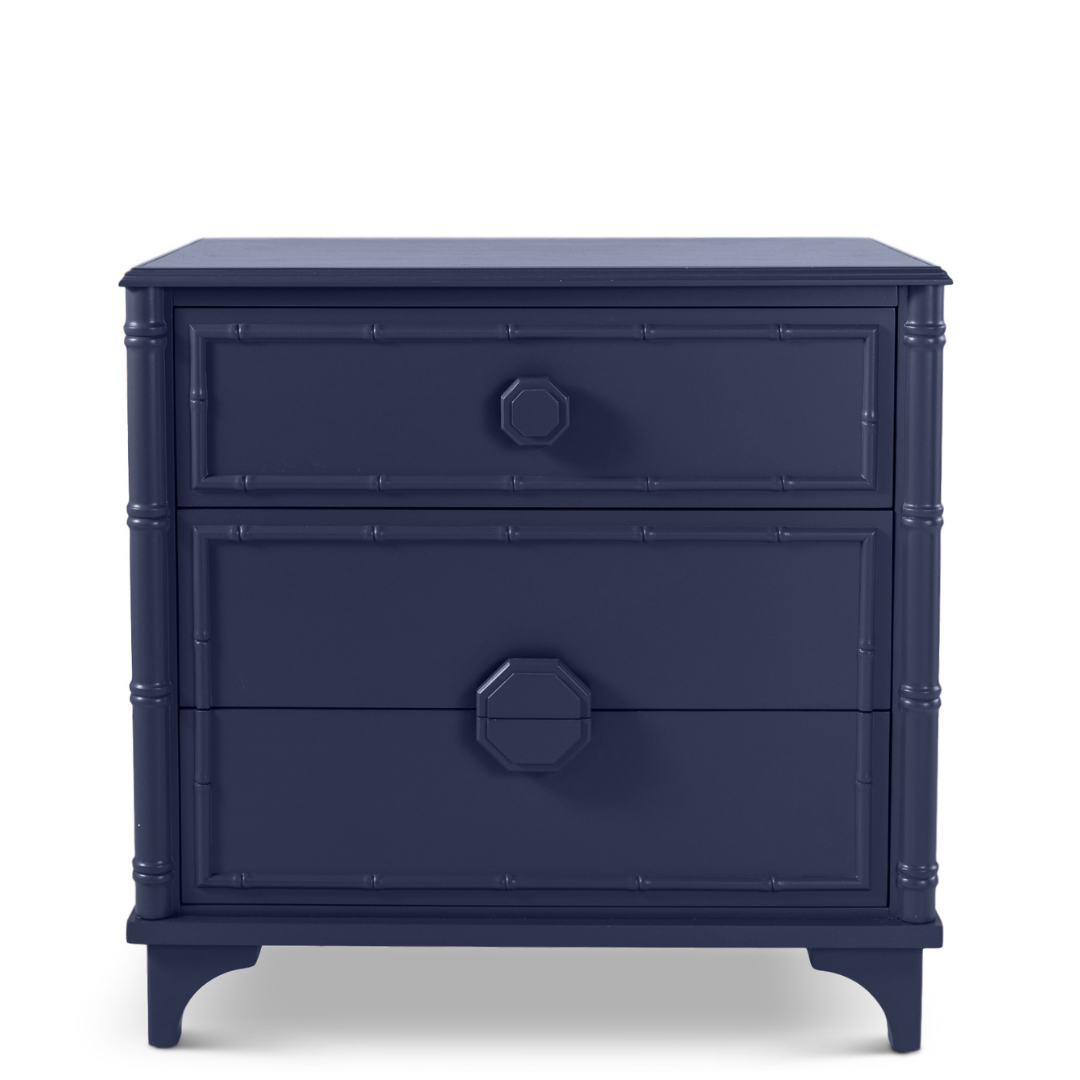 The Via Mizner Three-Drawer Chest boasts hand-carved faux bamboo flourishes, carved wood drawer pulls, and three generously proportioned drawers. Use as night tables on either side of a bed—or as extra storage in any room. We think Addison Mizner would have been proud. Available in Six Standard Finishes or specify any Benjamin Moore, Sherwin-Williams, or Farrow & Ball paint color for your own unique finish. To order this piece in a custom color, Click Here.