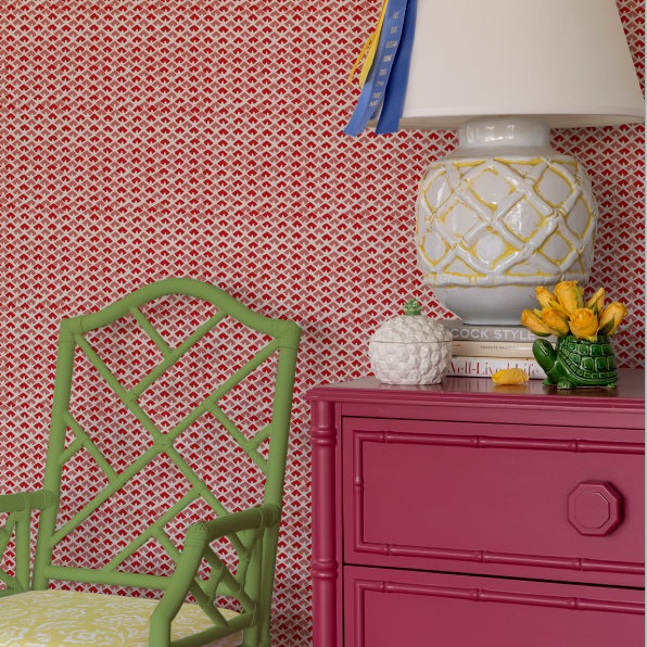 Oh, Pagoda Green and Pink Hand-Painted Tole Metal Tray