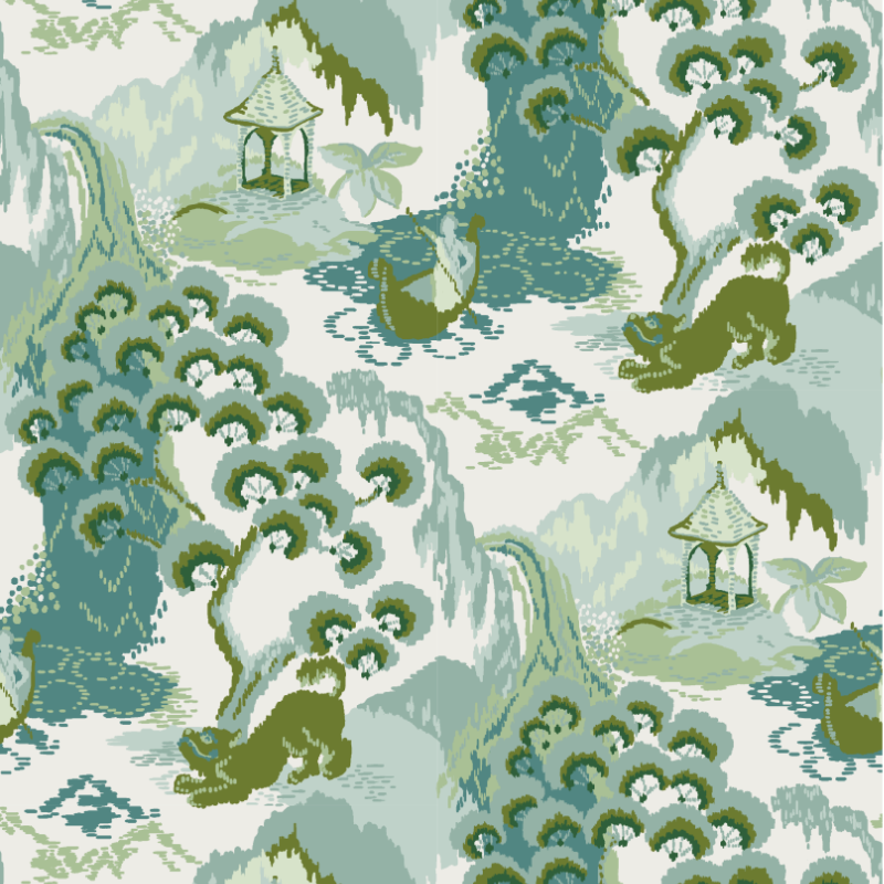 Old Peking Celadon Green Chinoiserie Wallpaper Sample