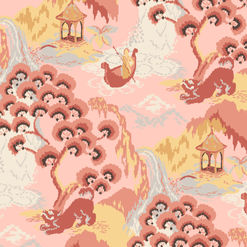 Old Peking Chinoiserie Fabric - Bahama Pink