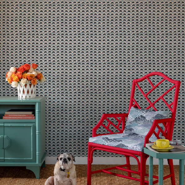 Old Peking Chinoiserie Fabric - Ocean Blue