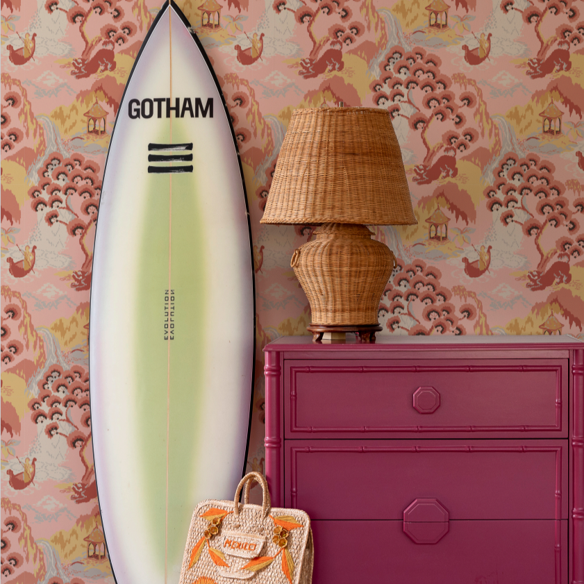 Old Peking Bahama Pink Chinoiserie Wallpaper Sample