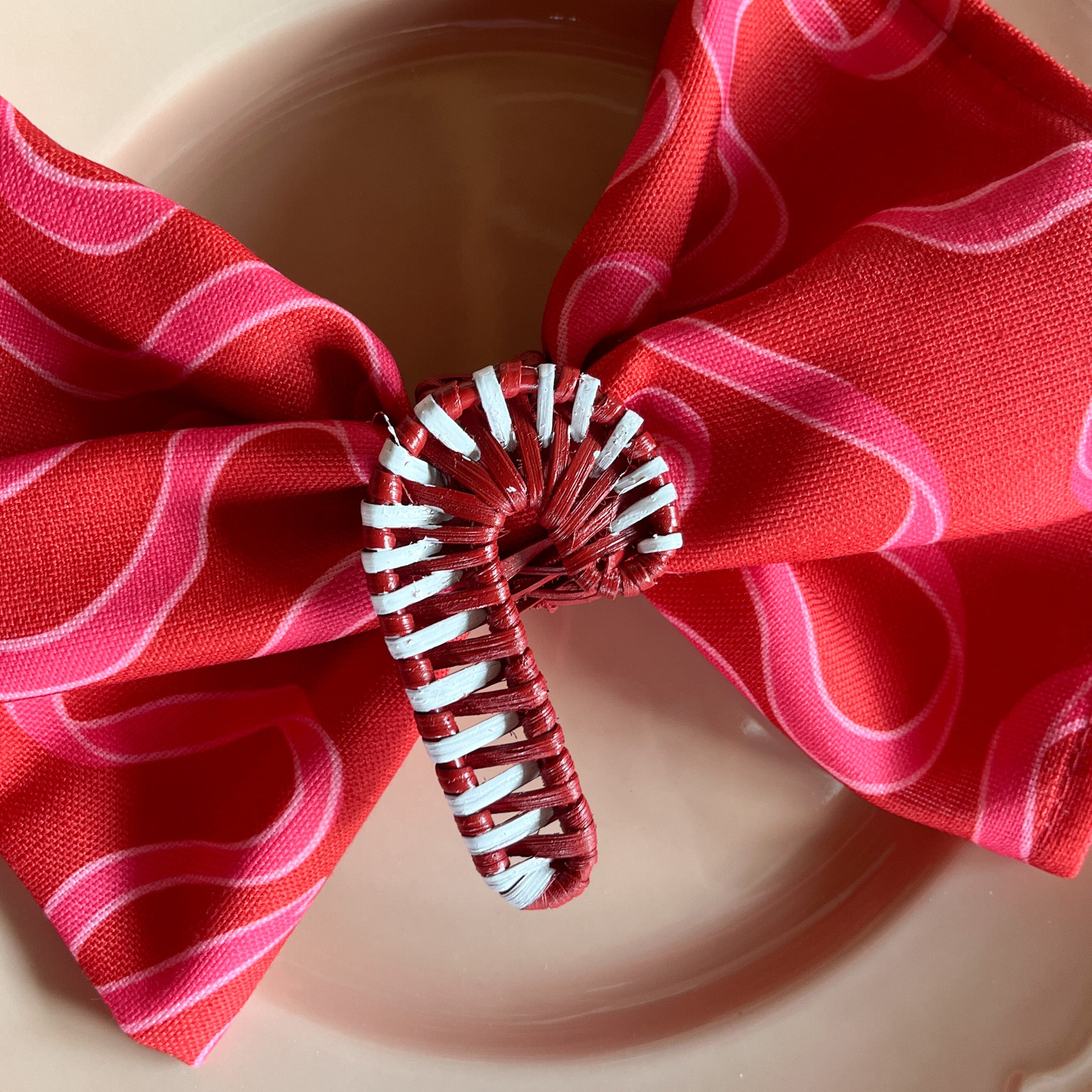 Rattan Red Candy Cane Christmas Napkin Ring, Set of 4