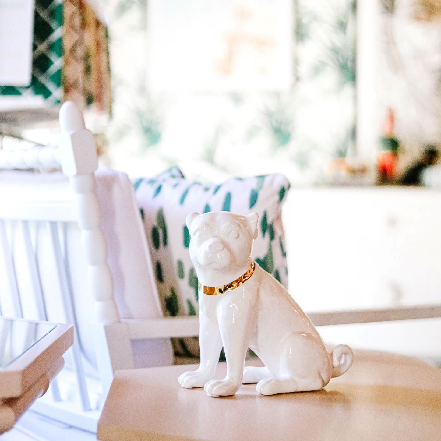 Pug Pink and Green Hand-Painted Metal Tole Tray
