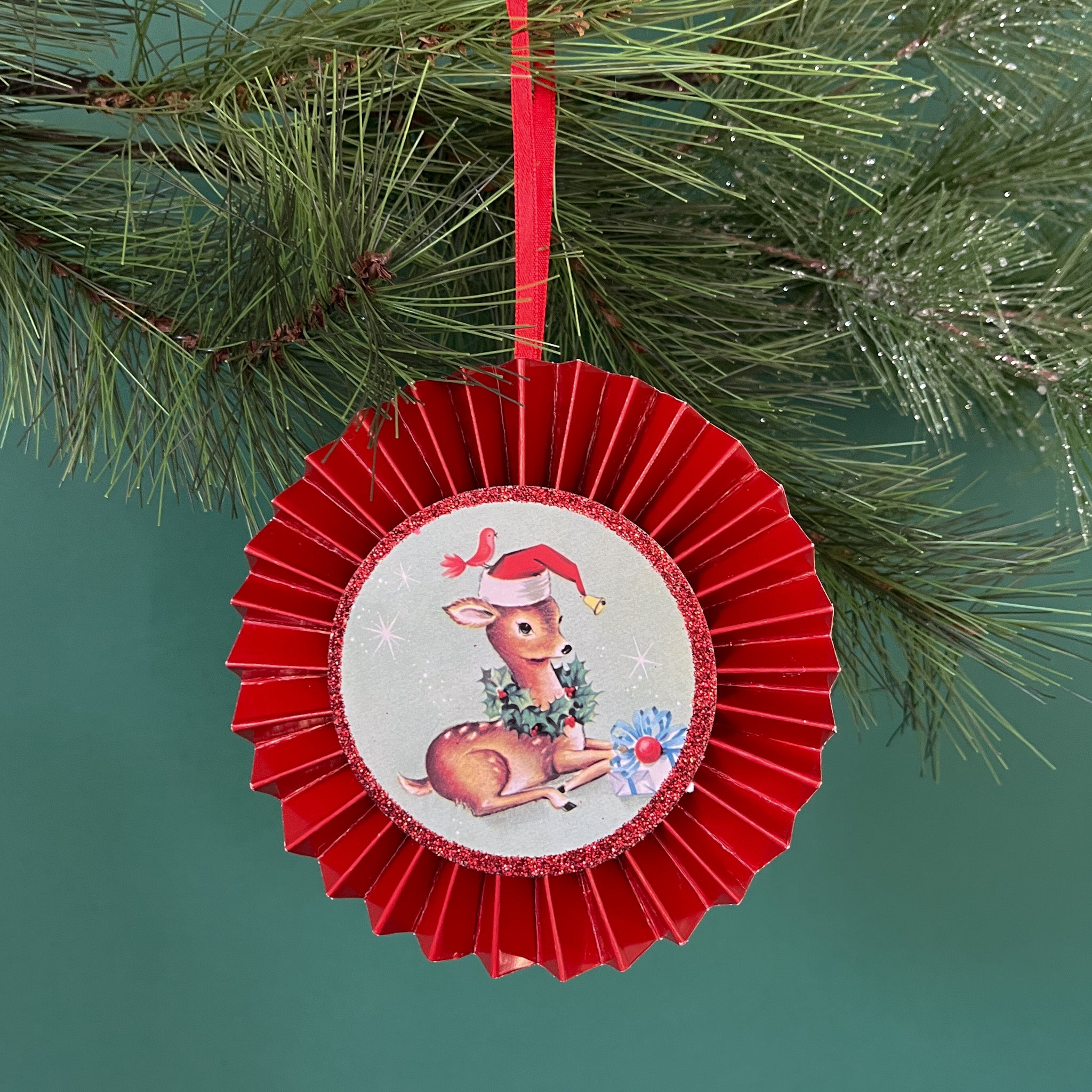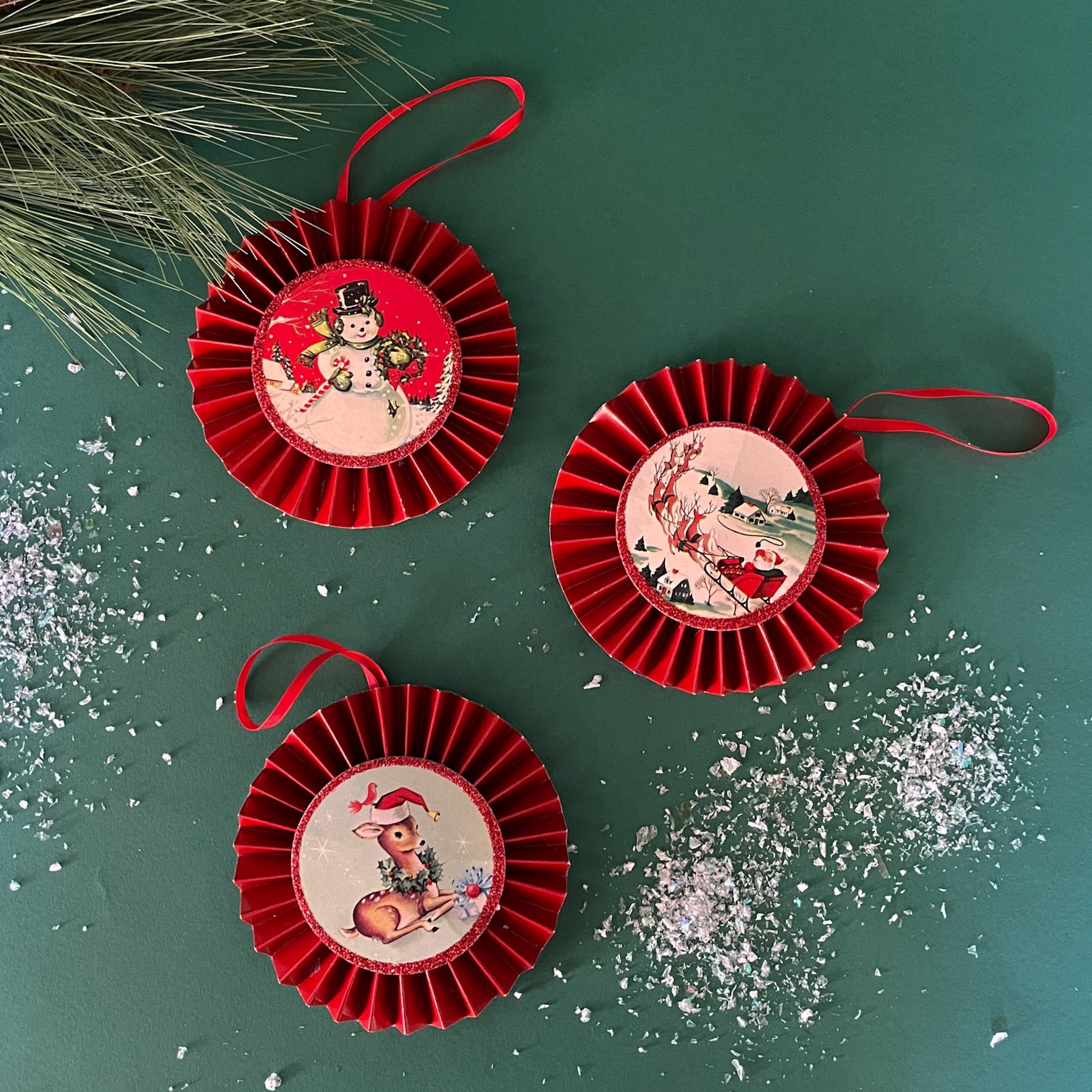 Retro Ruffled Reindeer, Santa and Snowman Christmas Ornaments, Set of 3