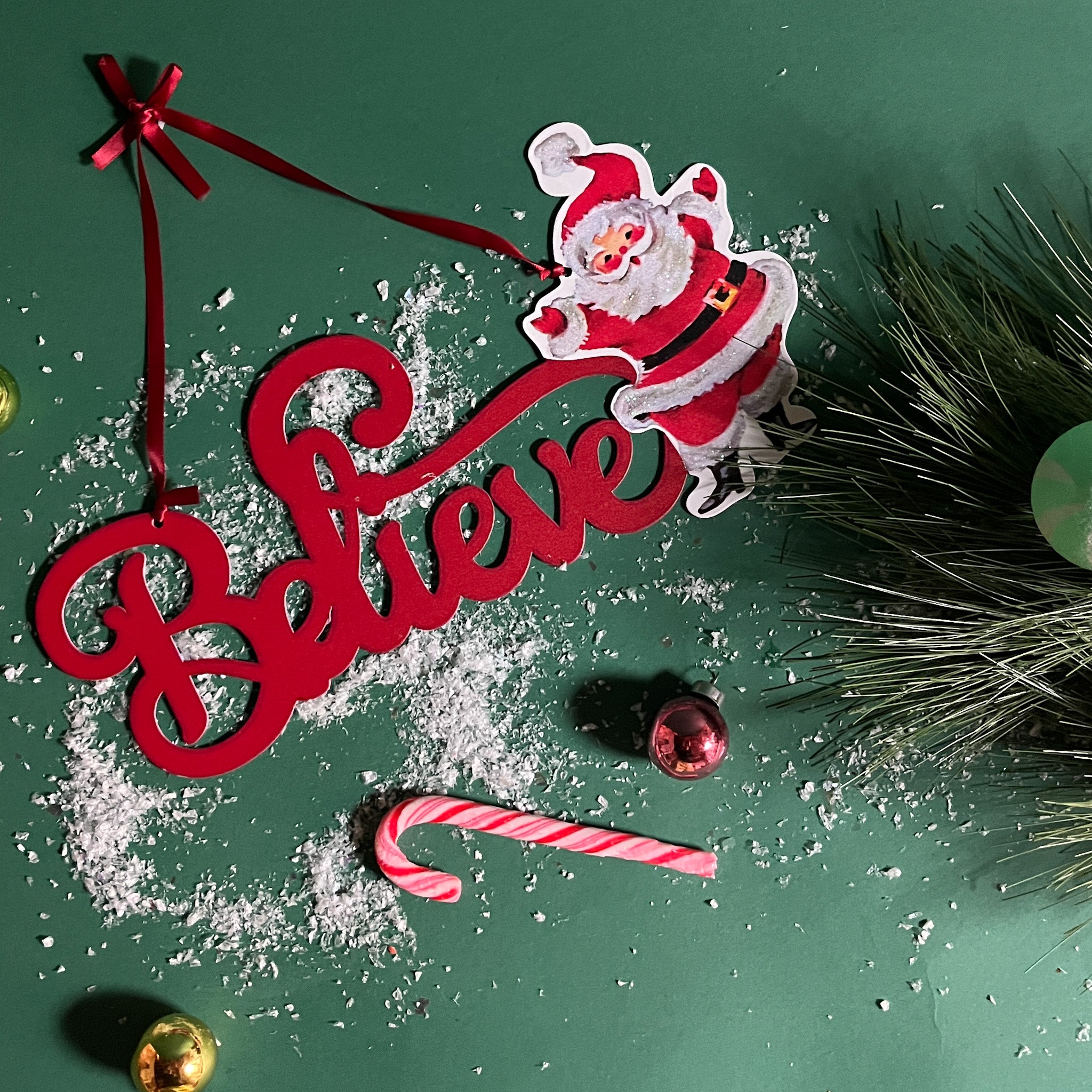 Retro Metal Believe in Santa Christmas Wall Hanging