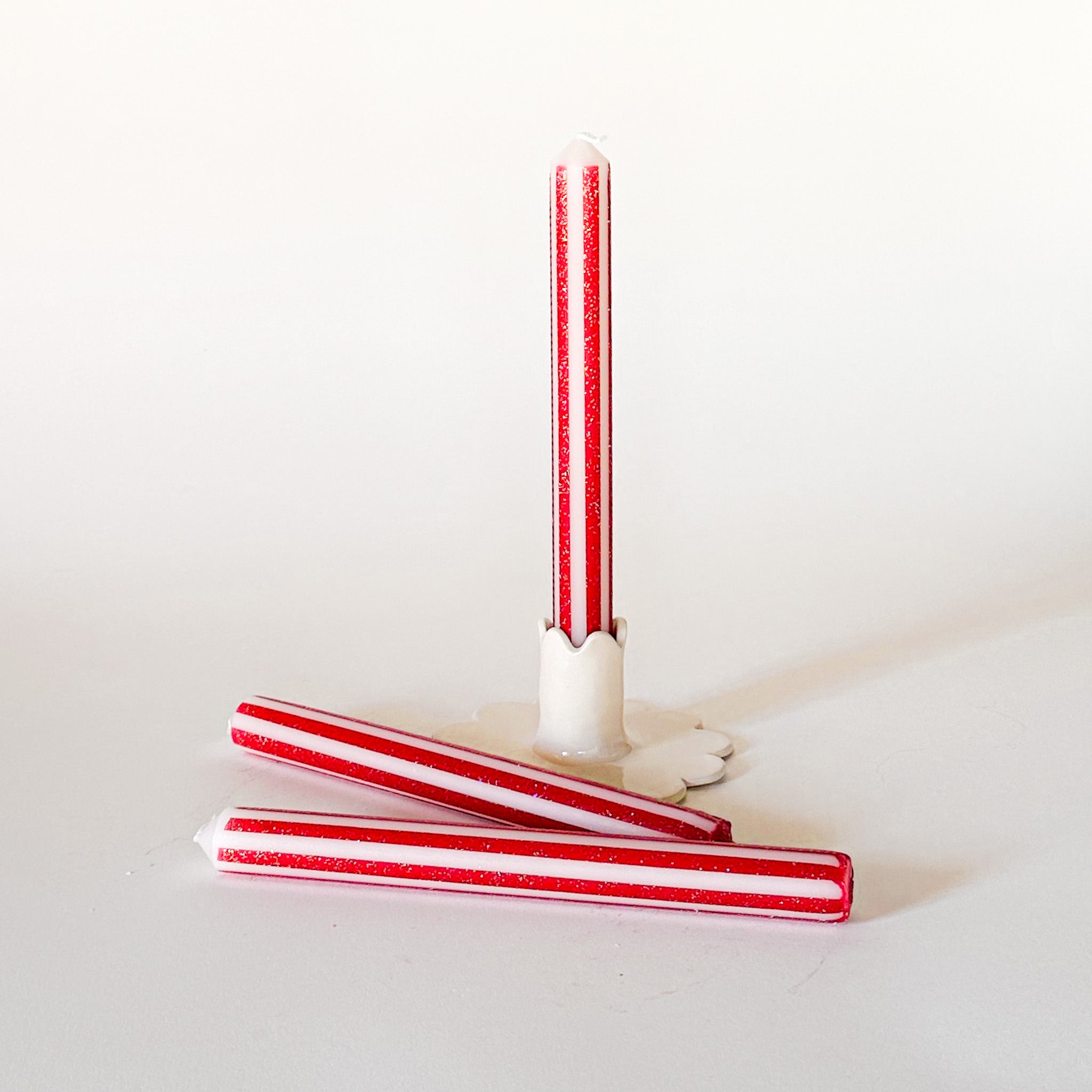 Red/Pink/White-Striped Taper Candles, Set of 4
