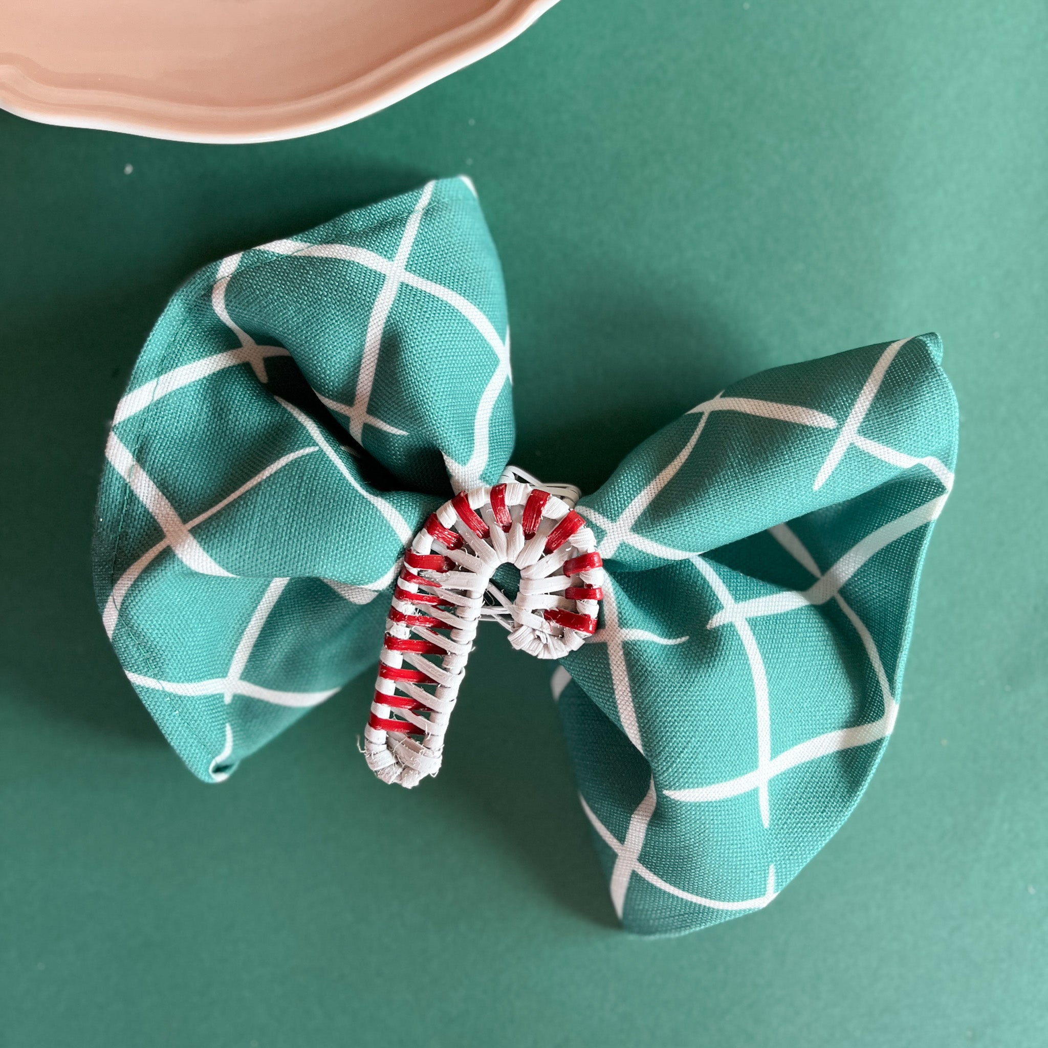 Rattan White Candy Cane Christmas Napkin Ring, Set of 4