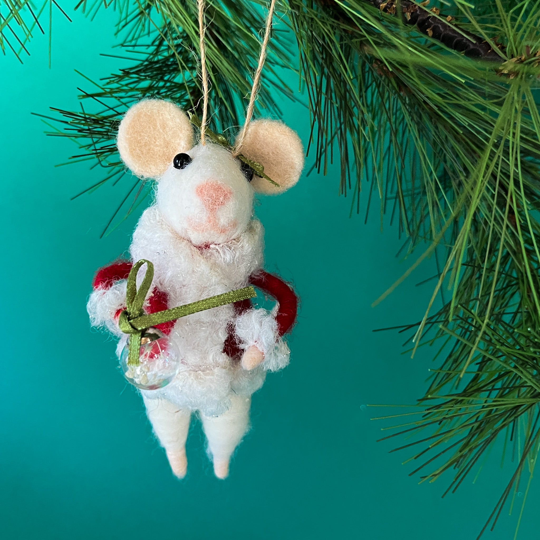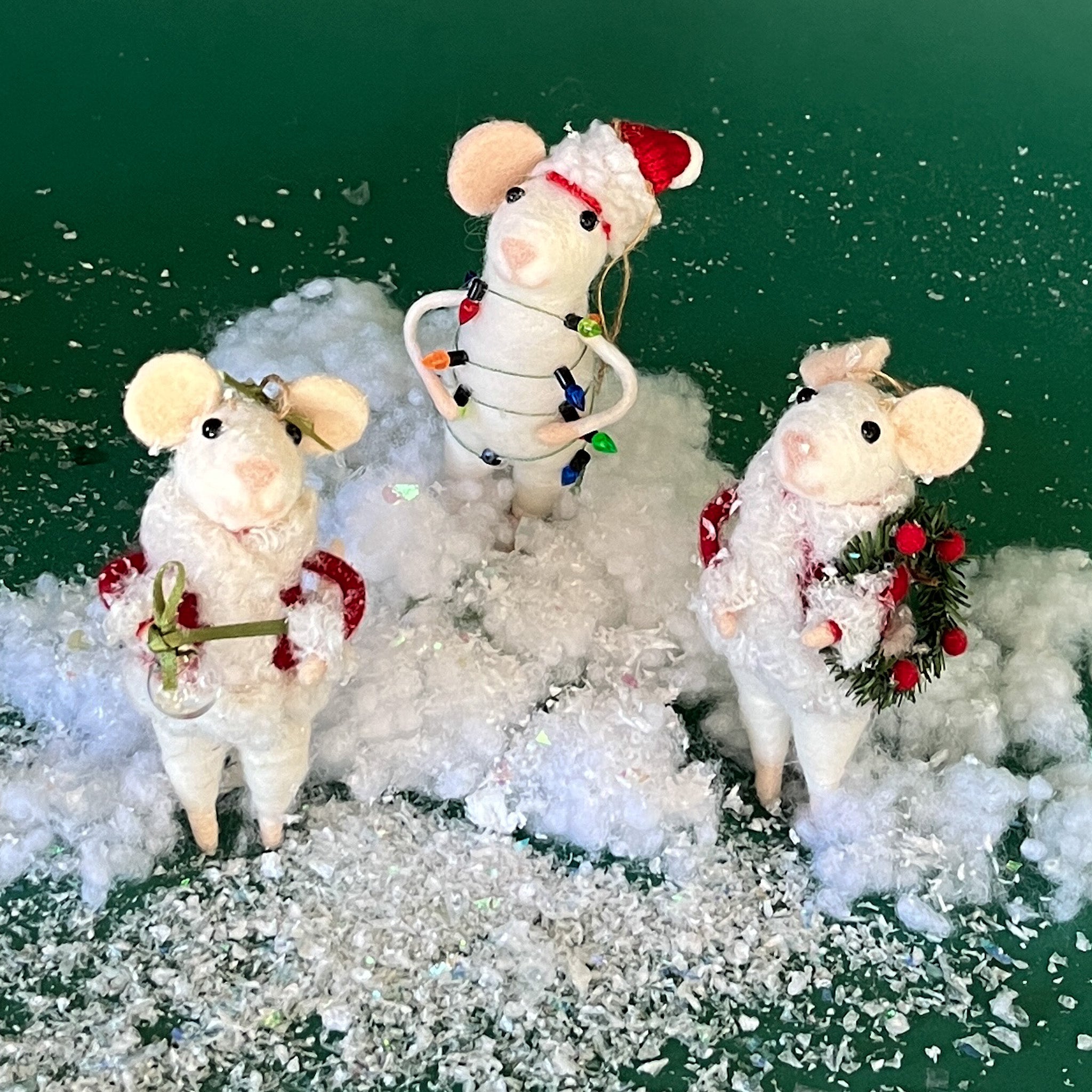 Santa Felt Mice with Gifts and Christmas Ornaments, Set of 3