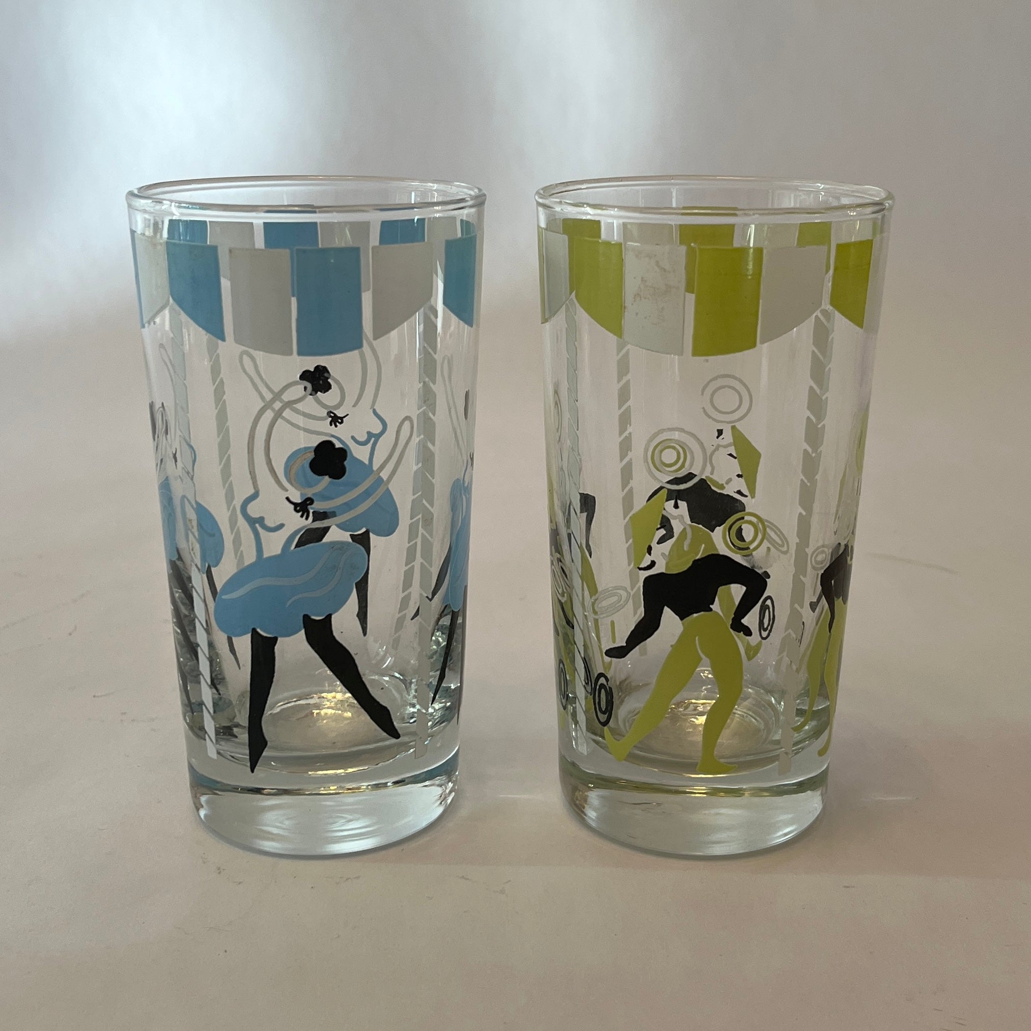 Tall Circus-Themed Vintage Glasses, Set of 6