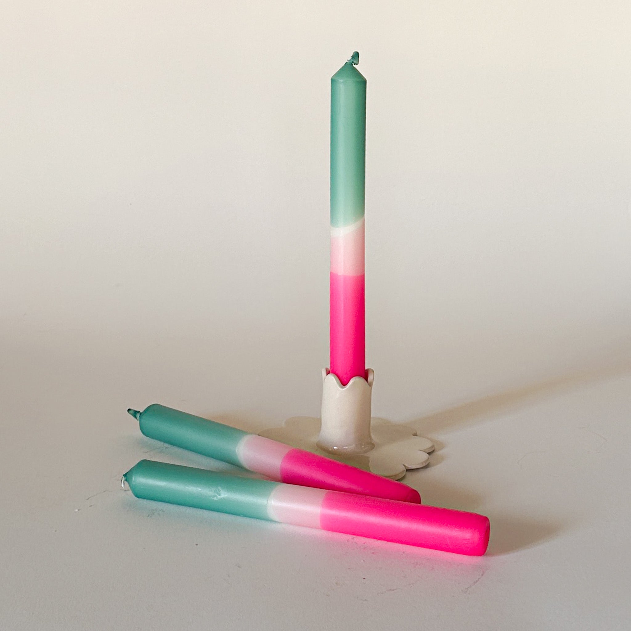 Teal/Pink/White Color-Block Taper Candles, Set of 3
