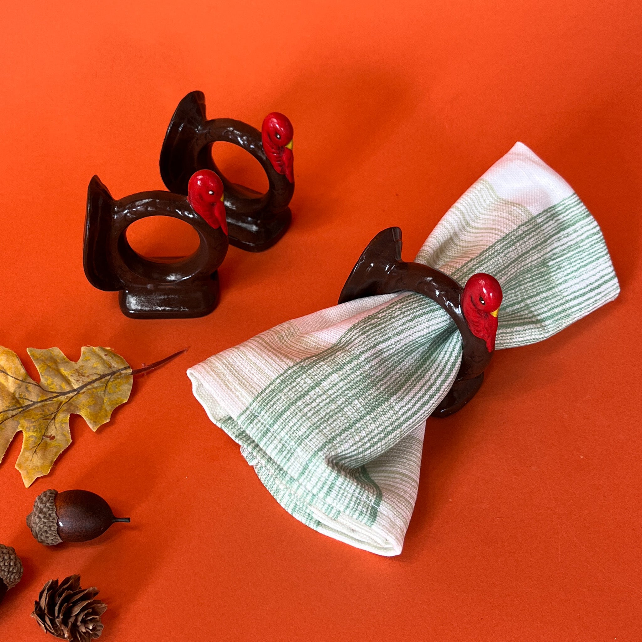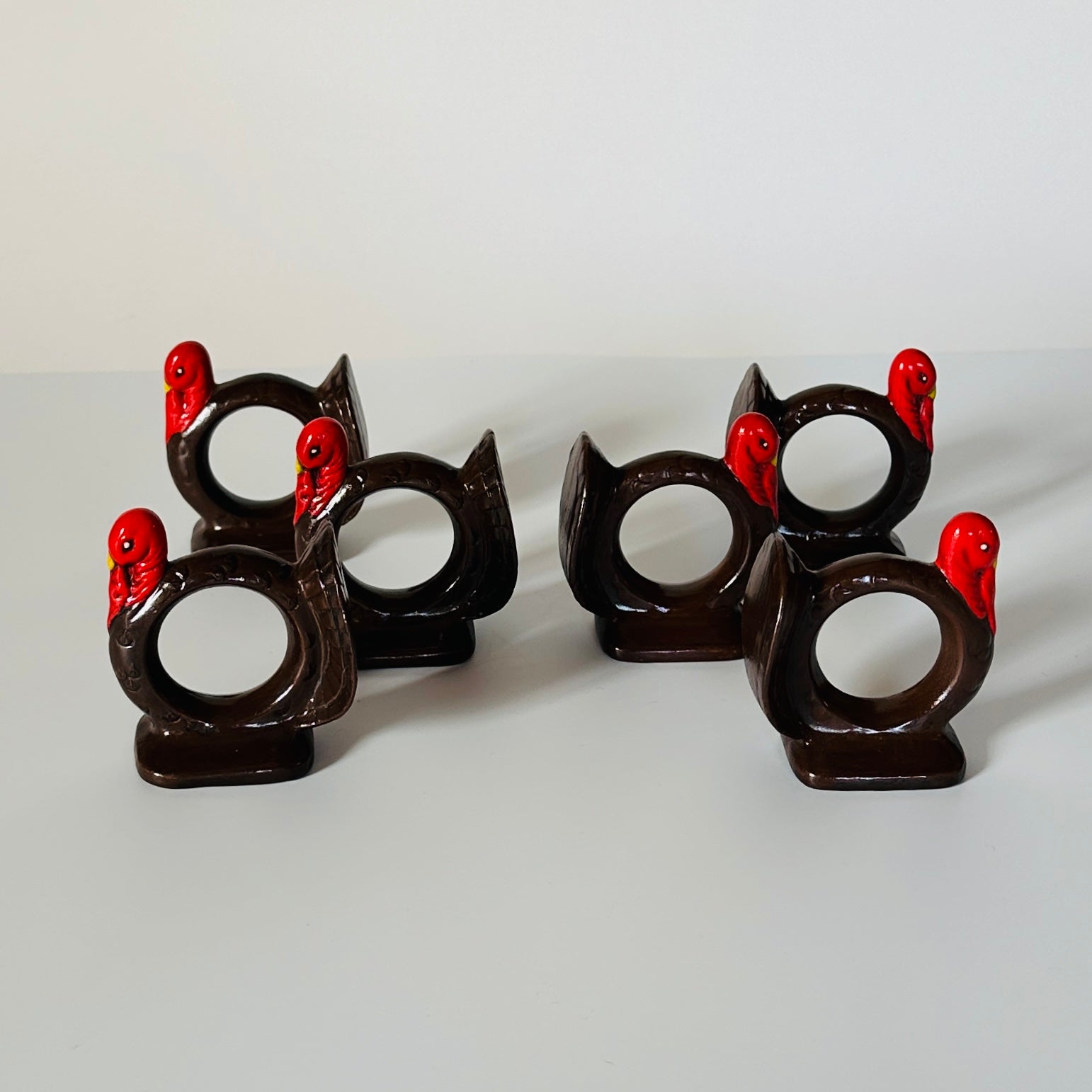 Vintage Ceramic Thanksgiving Turkey Napkin Rings, Set of 6