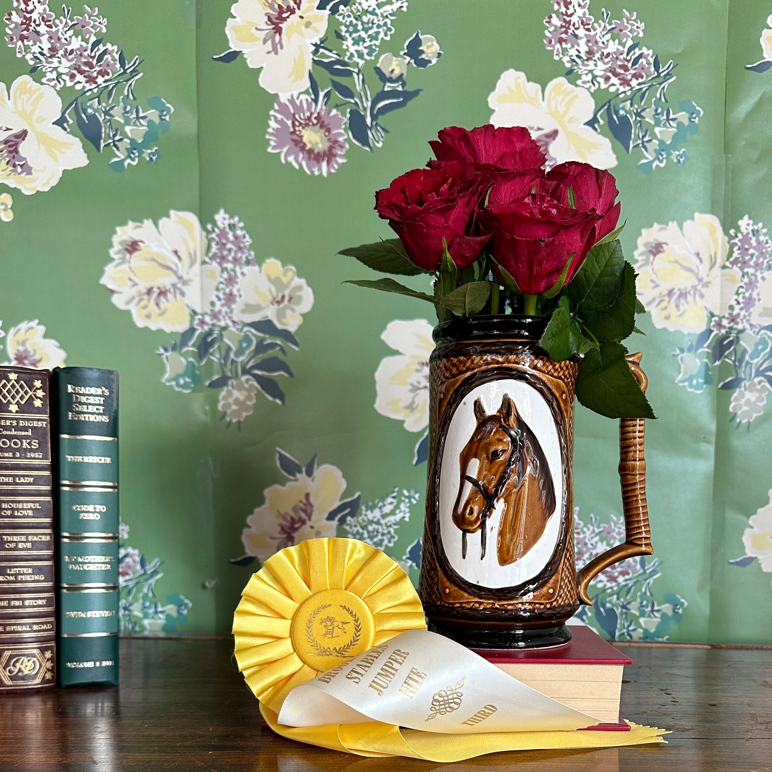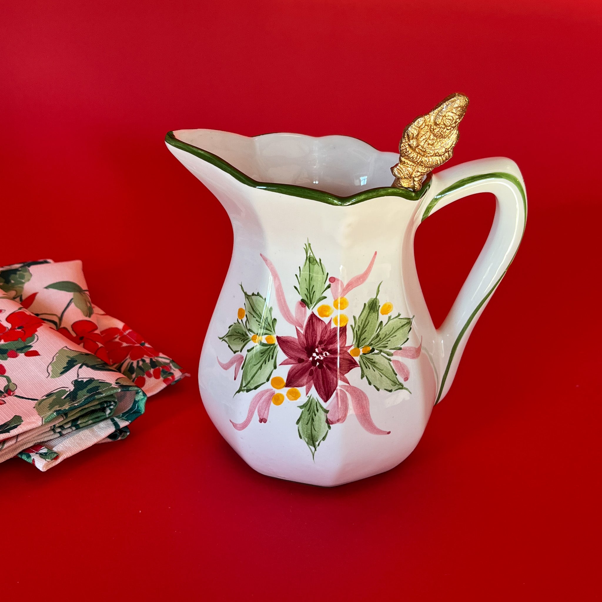 Vintage Ceramic Portuguese Hand-Painted Poinsettia/Holly Pitcher