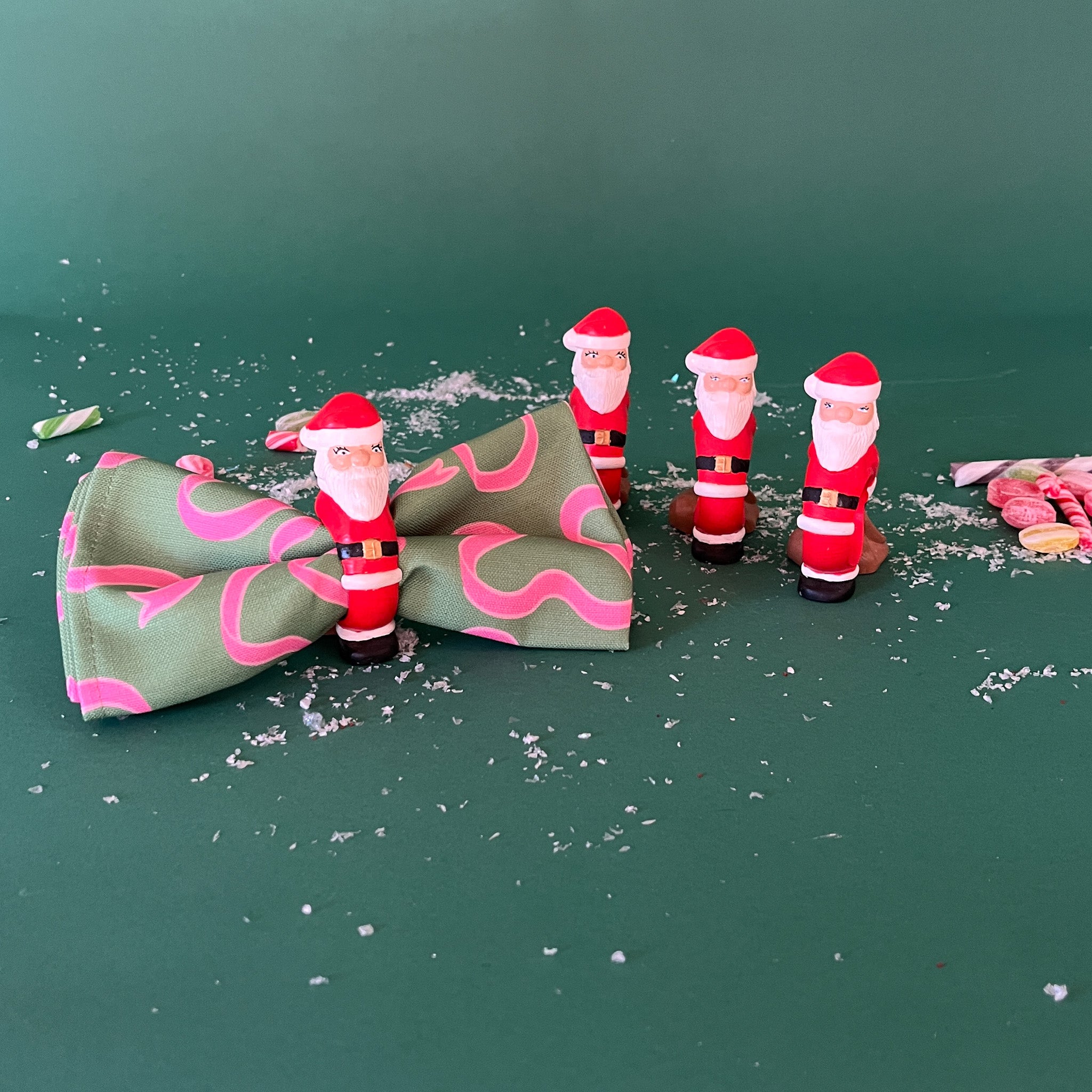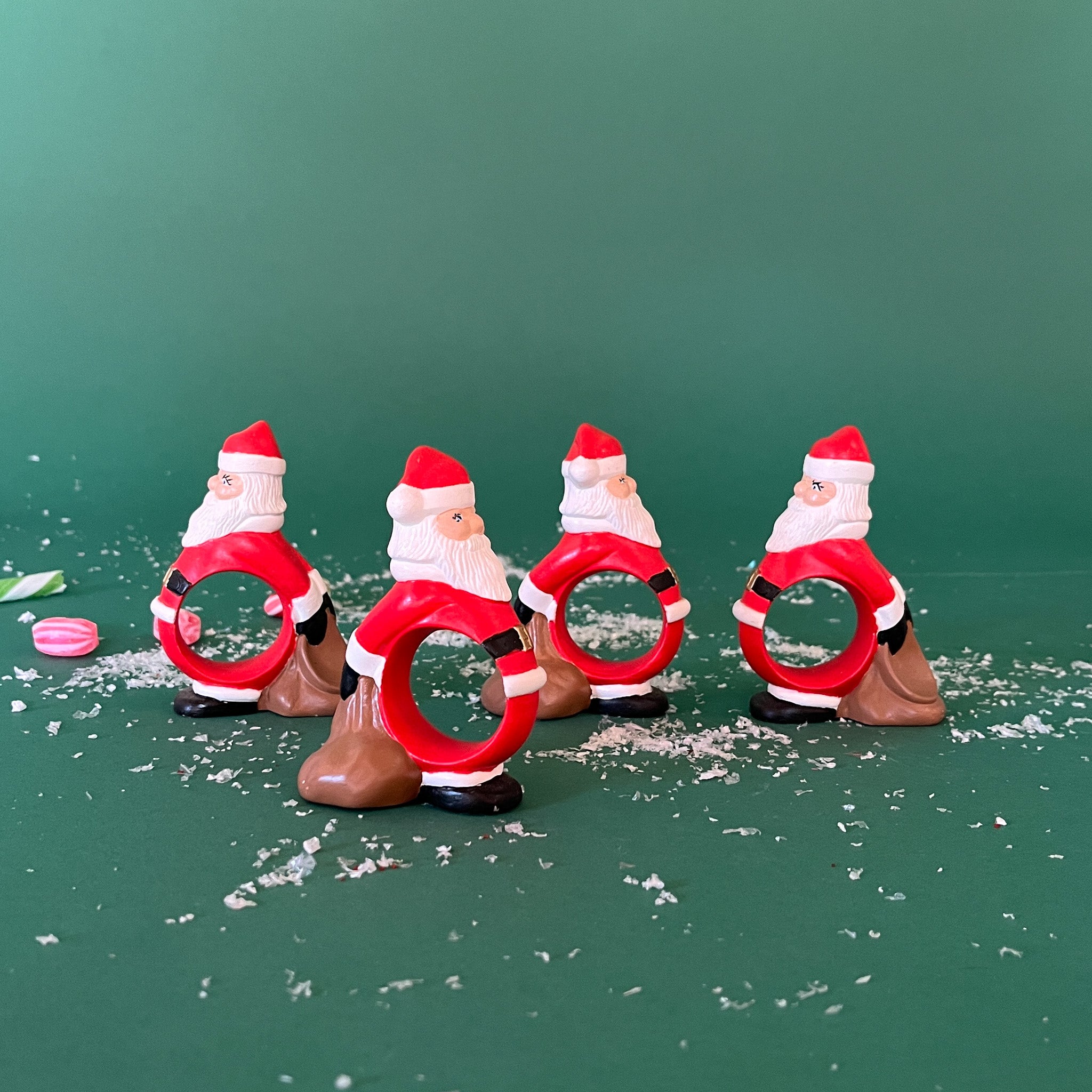 Vintage Ceramic Santas w/Gift Bags Napkin Rings, Set of 4