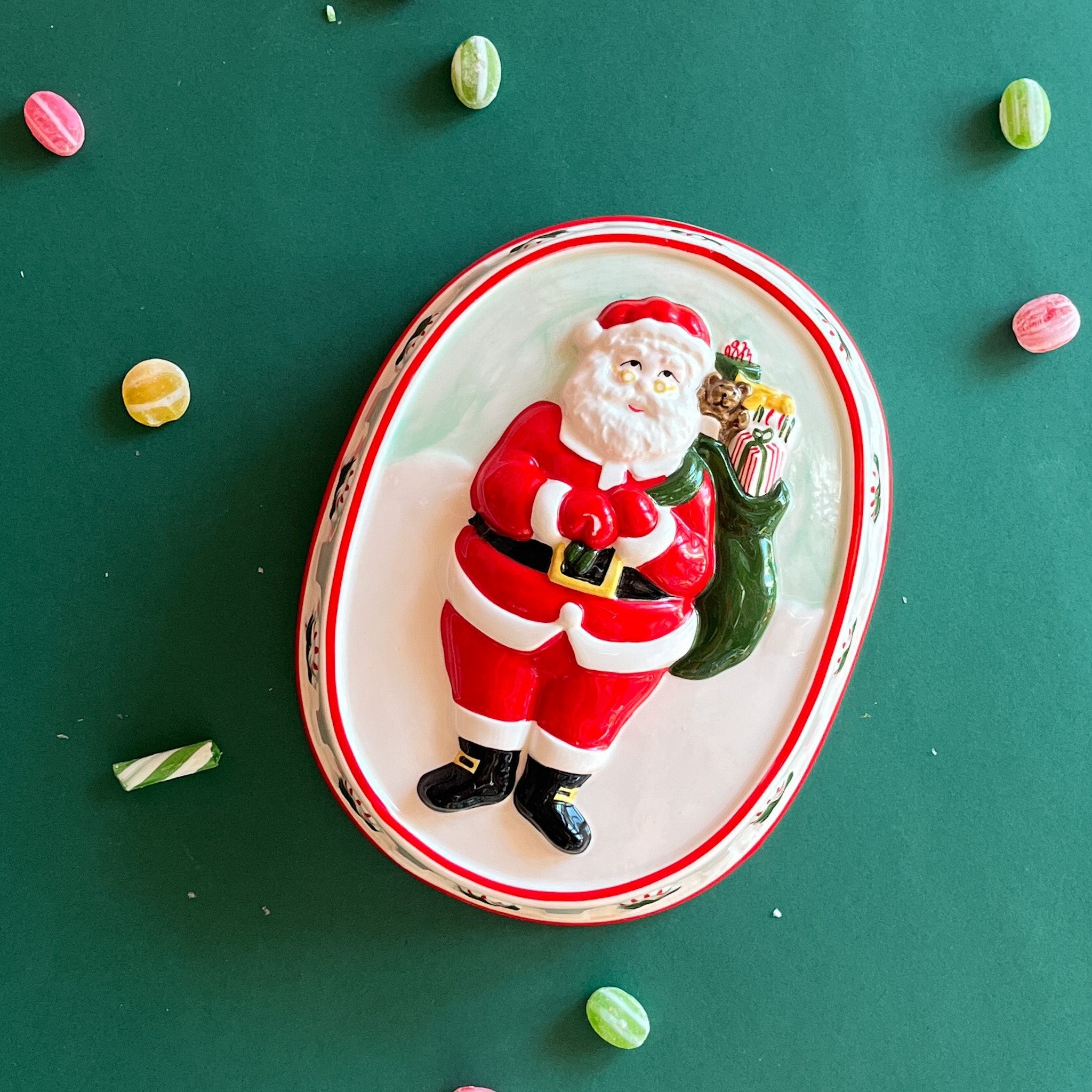 Vintage Ceramic Hand-Painted Santa with Candy Canes Mold/Wall Decoration