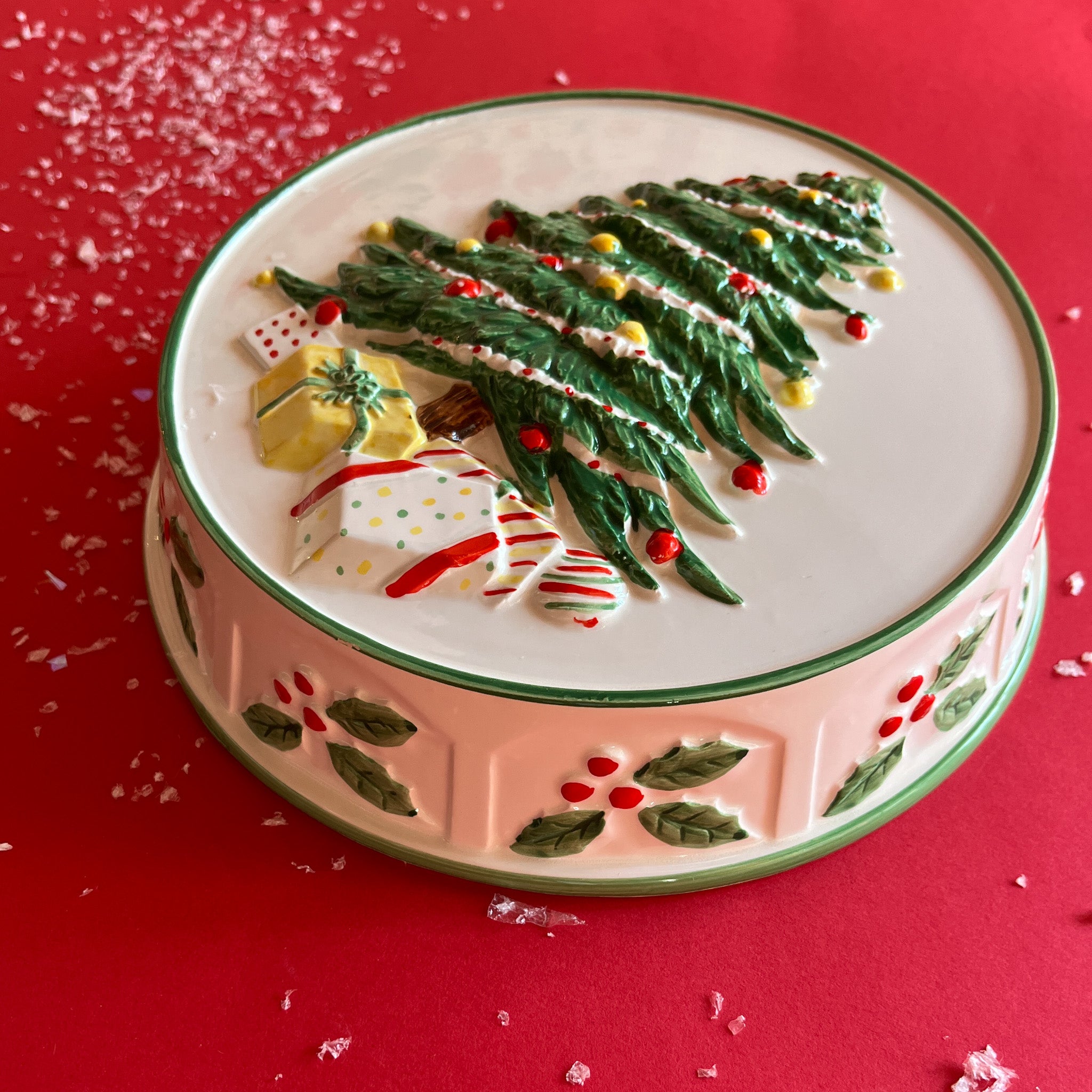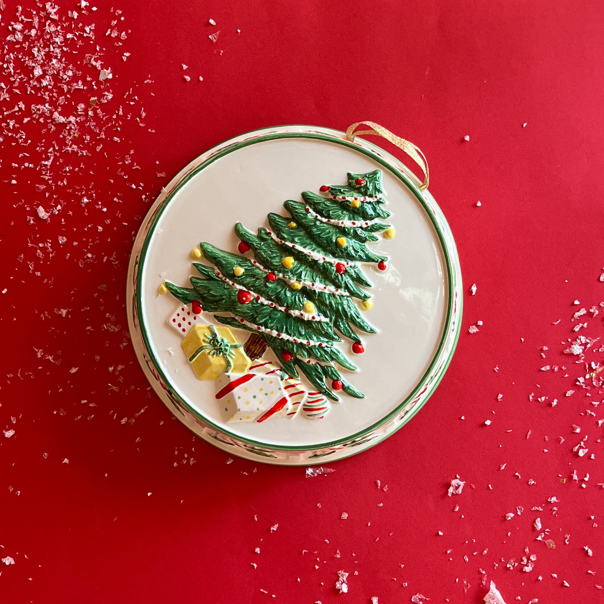 Vintage Ceramic Hand-Painted Christmas Tree with Presents Mold/Wall Decoration, Pair