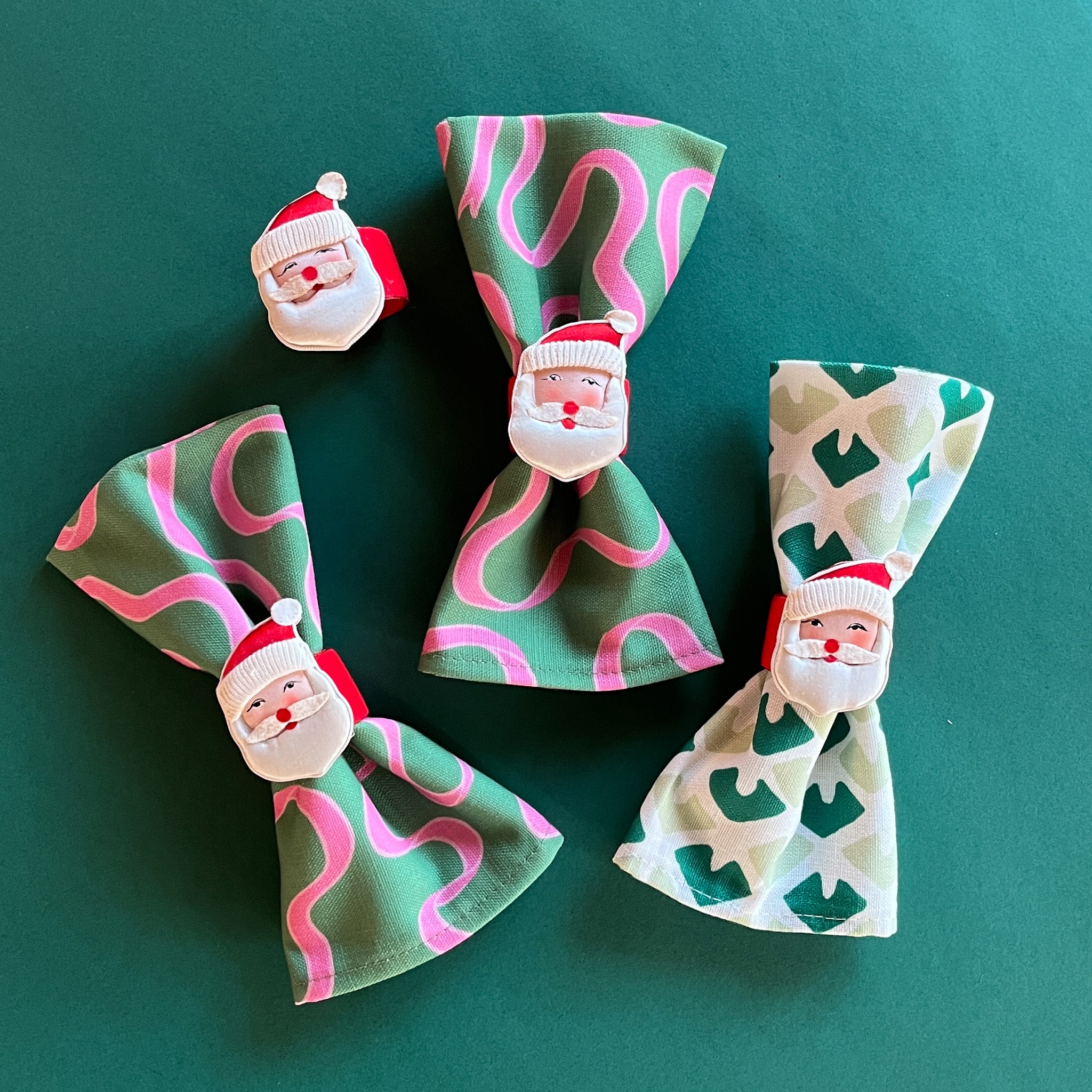 Vintage Jolly Santa Christmas Napkin Rings, Set of 4