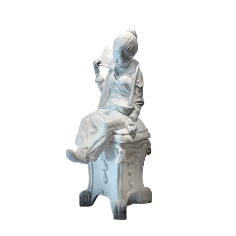 Vintage White Arched-Neck Ceramic Swan with Pink, Purple and Gold Christmas Tree Centerpiece