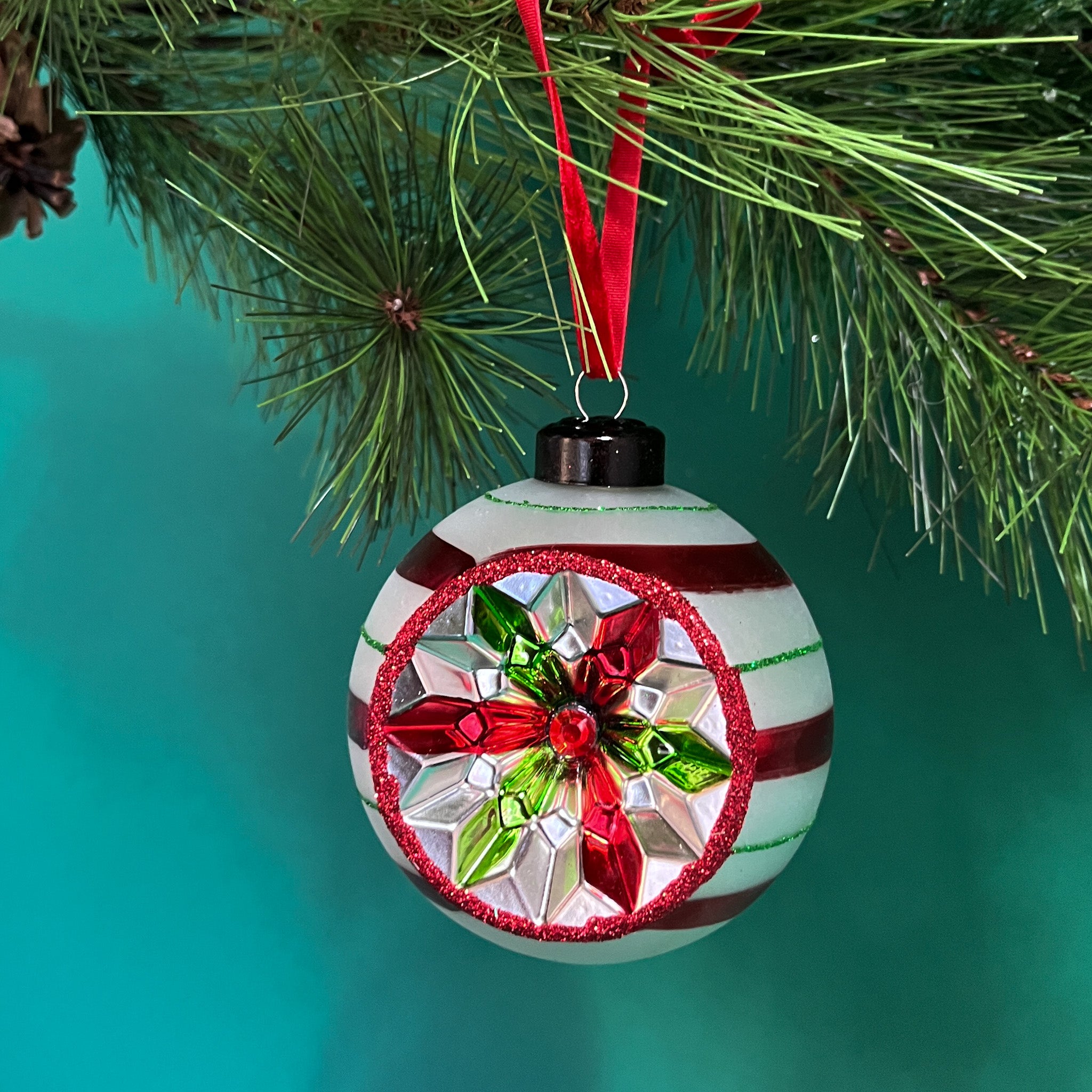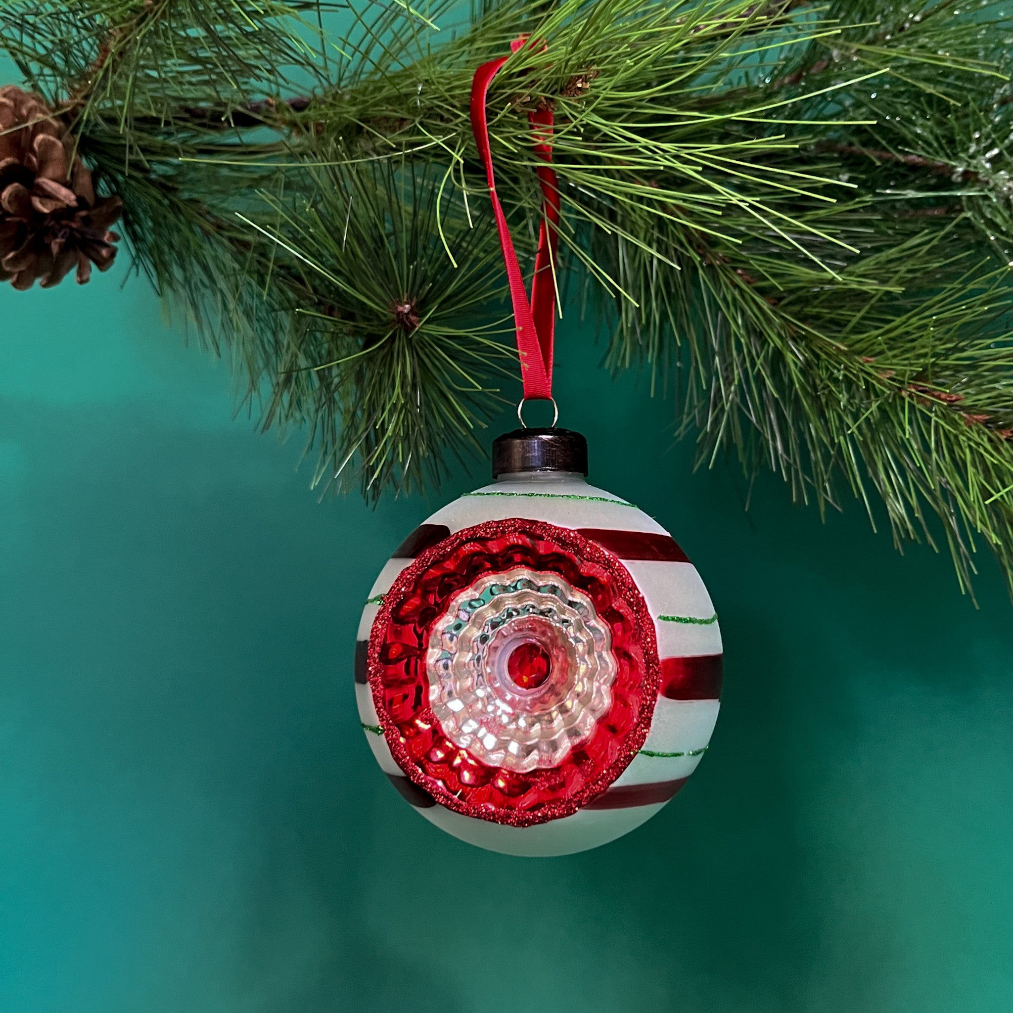 Vintage-Style Glass Round Candy-Stripe Christmas Ornaments, Set of 6