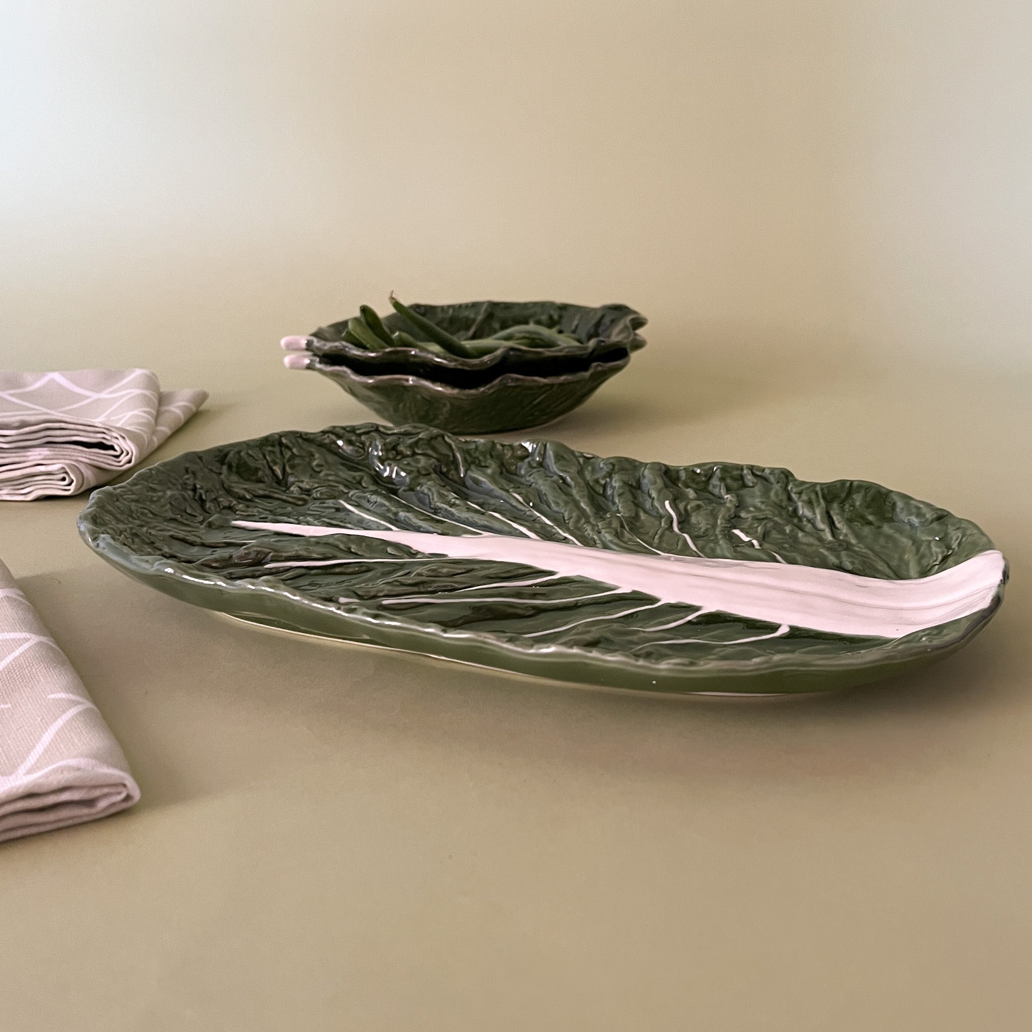 Serve your holiday fare with timeless charm using this beautifully crafted Hand-Painted Ceramic Cabbage Leaf Platter. Both functional and festive, it’s perfect for presenting everything from roasted vegetables to sweet treats with style. With its sculptural detail and classic design, it also doubles as a striking display piece when not in use—making it a standout addition to any holiday table or buffet.