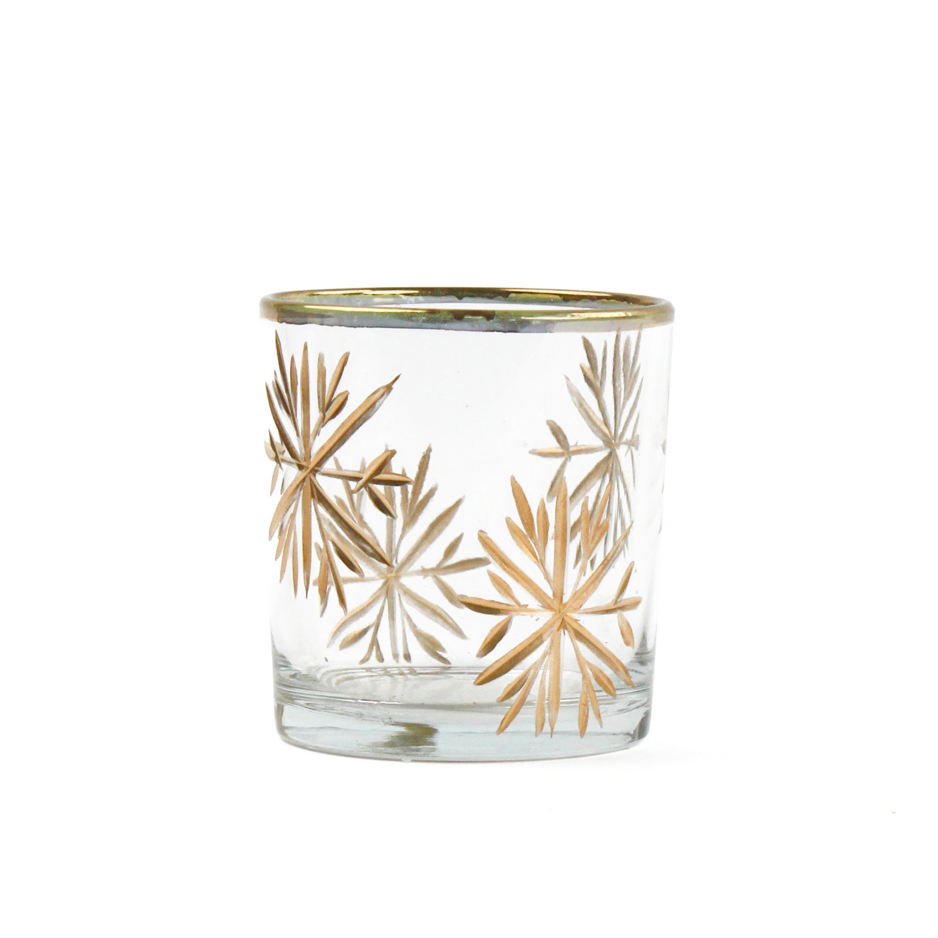 Perfect for holiday tablescapes, cozy evenings, or sophisticated everyday décor, these Clear Glass Votive Candle Holders with gold motifs bring warmth and luxury wherever they're placed. Whether clustered together or displayed individually, they create an inviting glow that turns any moment into a special occasion.