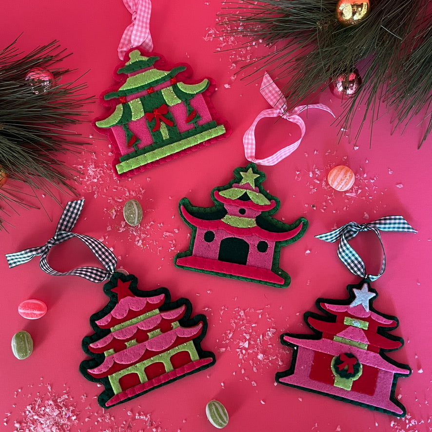 The Madcap gents found an amazingly talented artist in the States and had them craft these Felt Pagoda Chinoiserie Christmas ornaments based upon their original designs. Wow, the glorious details. True works of art.
