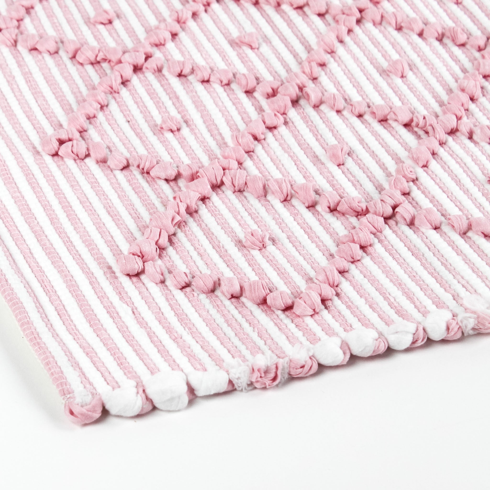 Madcap Cottage's exclusive design, our Diamonds accent rug in pink will bring just the right amount of high-function panache to any floor in your home. Made of recycled cotton, she is machine washable and makes the perfect bath math too! Form and function--that's how we roll.