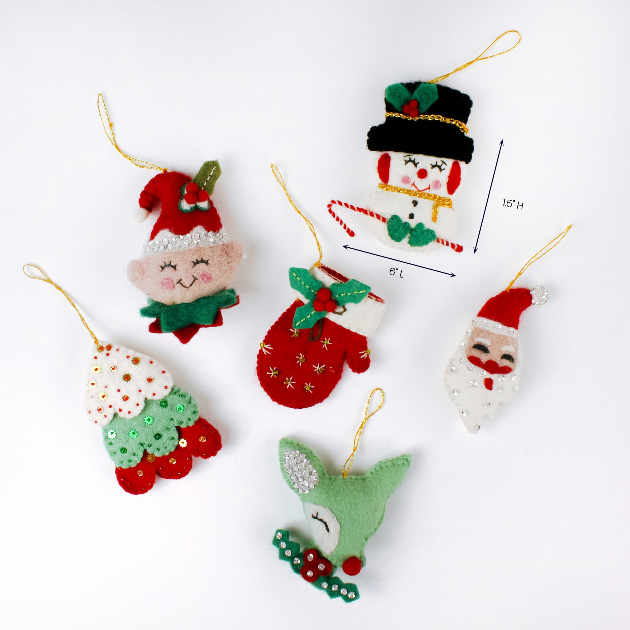Felt Holiday Icons Christmas Ornaments, Set of 6