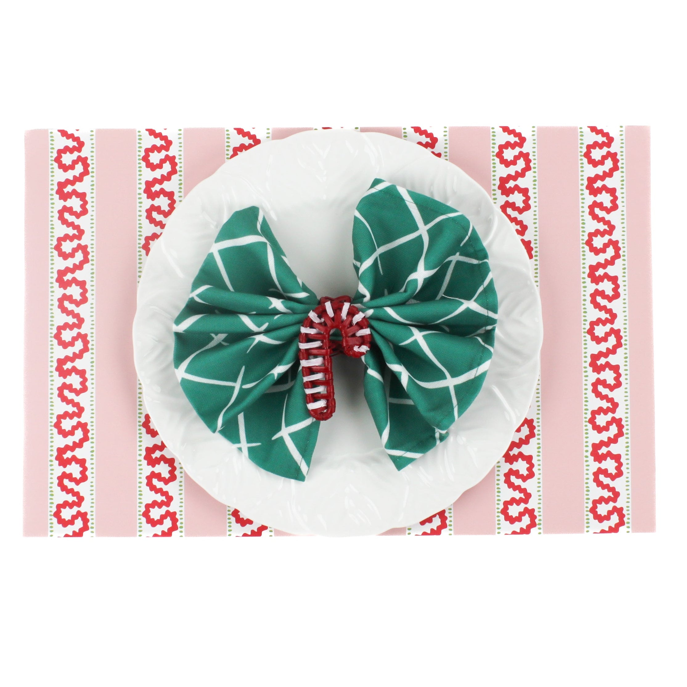 Harbor Trail will whisk you off to the easy-breezy climes of Palm Beach where the living is easy and the sun shines down upon a timeless wonderland. Say the Madcaps, "I sketched this pattern one afternoon while lunching at our favorite Renato's restaurant in Via Mizner with fountains tinkling in the background. I hope these made-in-America Harbor Trail Rectangular Paper Placemats in pink and red deliver that spirit of a magical afternoon spent under the swaying palm trees."
