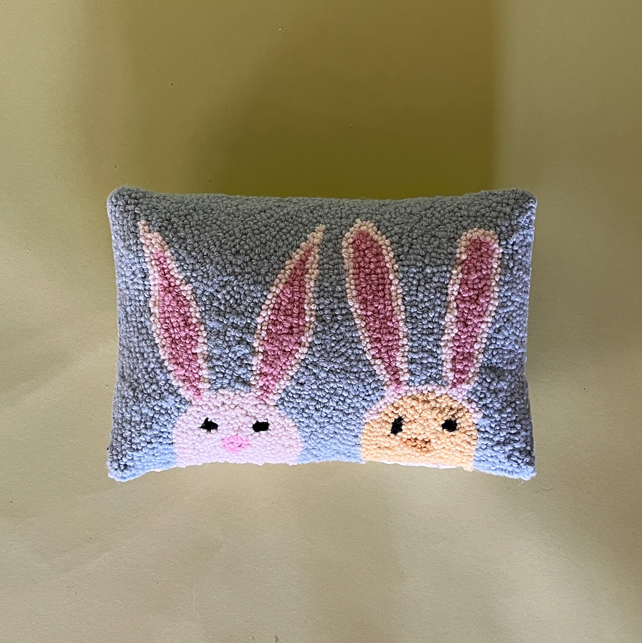 Rectangular Hooked Wool Duo Chick and Bunny Pillow