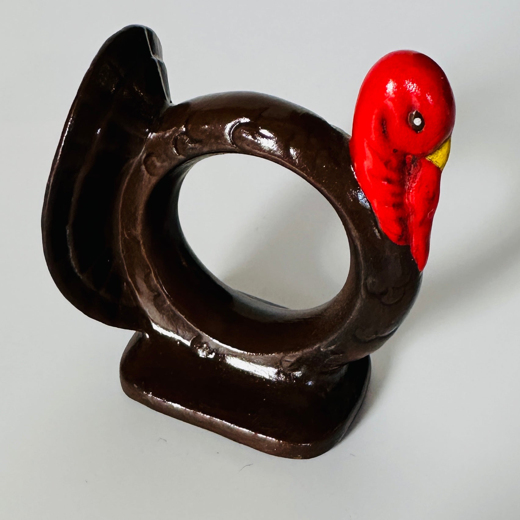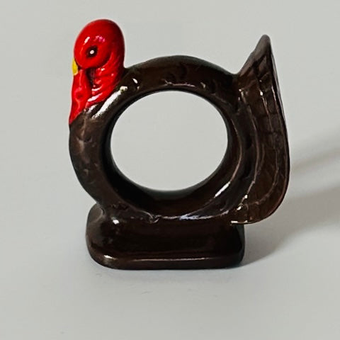 Vintage Ceramic Thanksgiving Turkey Napkin Rings, Set of 6