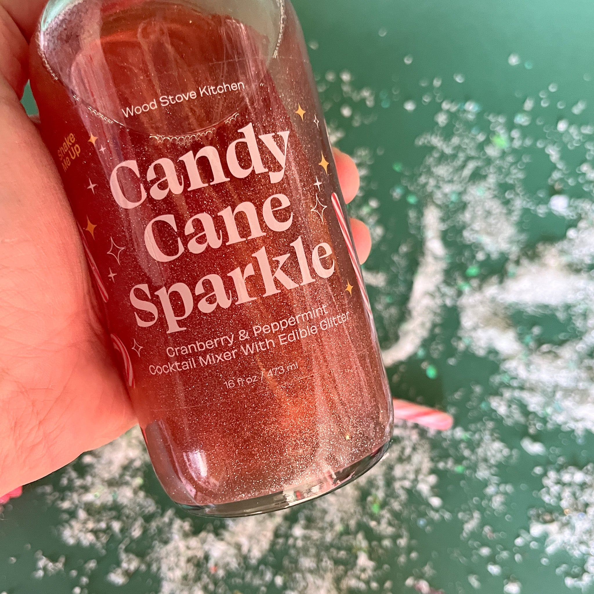 Christmas cocktails were never so sparkling and glamorous! For a perfect Candy Cane Cosmo, mix 1 ounce Candy Cane Sparkle mixer with 1.5-2 ounces of vodka and shake over ice, rim with crushed candy. You will thank us later. 16 ounces. Also makes delicious non-alcoholic drinks.