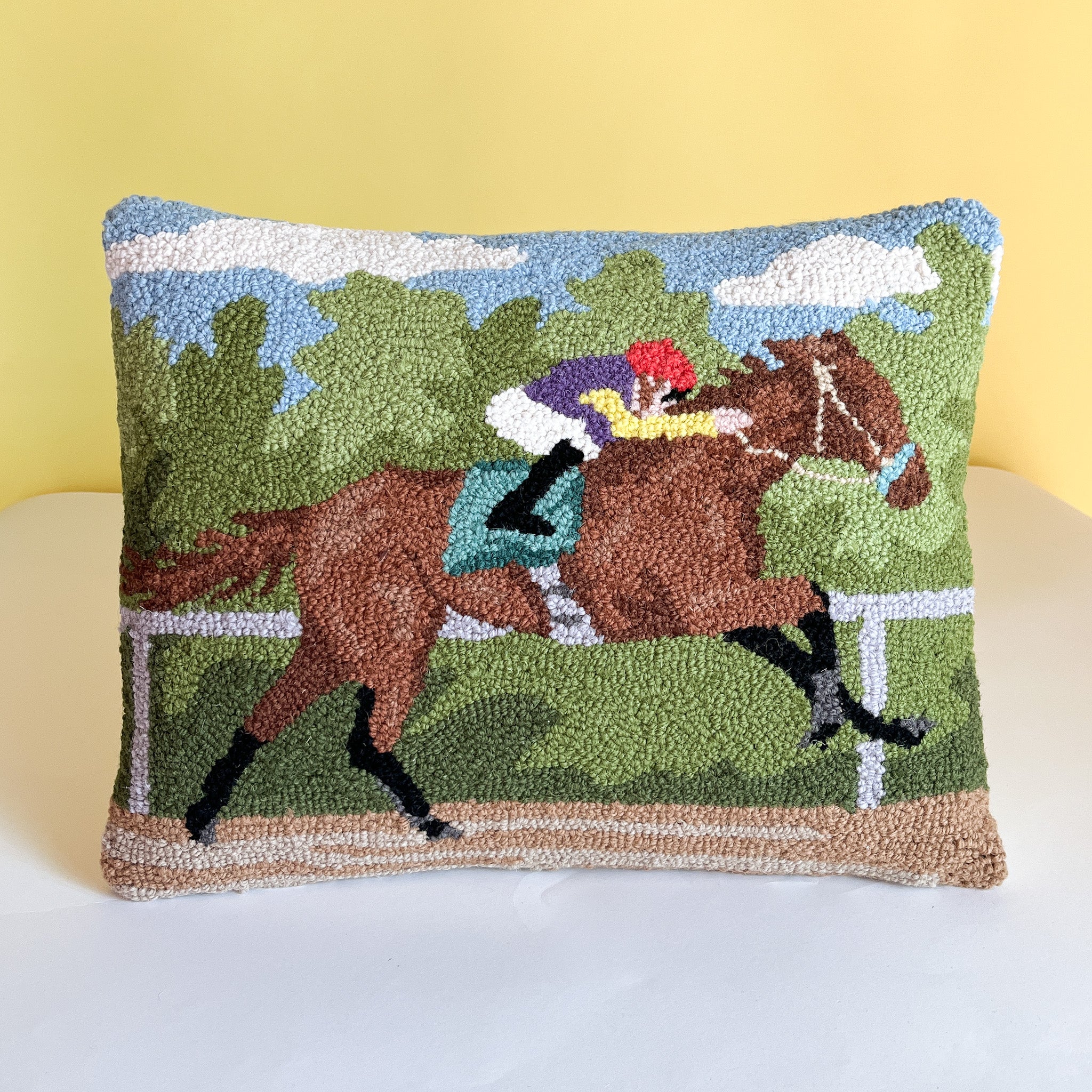 Get ready for Derby Day in signature Madcap Cottage style with this stunning hooked wool Derby Day pillow. If you can't head for Louisville, Kentucky, bring the adventure home. If only to a favorite sofa or comfortable chair.