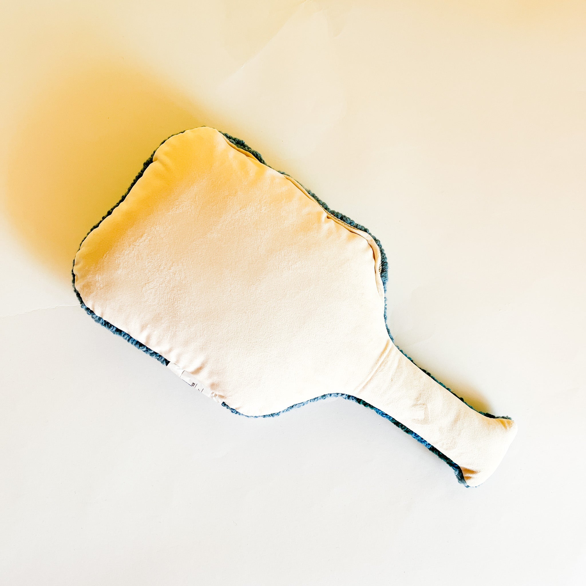 Ah, the sport that has taken the nation by storm. Bring the court-side pleasures home with this unique paddle-shaped, hooked-wool, blue striped pickleball pillow. Ace, we say, ace!