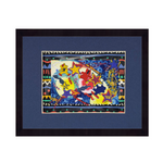 Aim for the stars! Star-kissed elephants march across the sky in this utterly charming, John Loecke-crafted collage that packs a lot of punch and pizzazz. Enclosed in a 16 x 20 black wood shadow box frame with archival matting. Hook for hanging. One available. Please allow four weeks for framing.