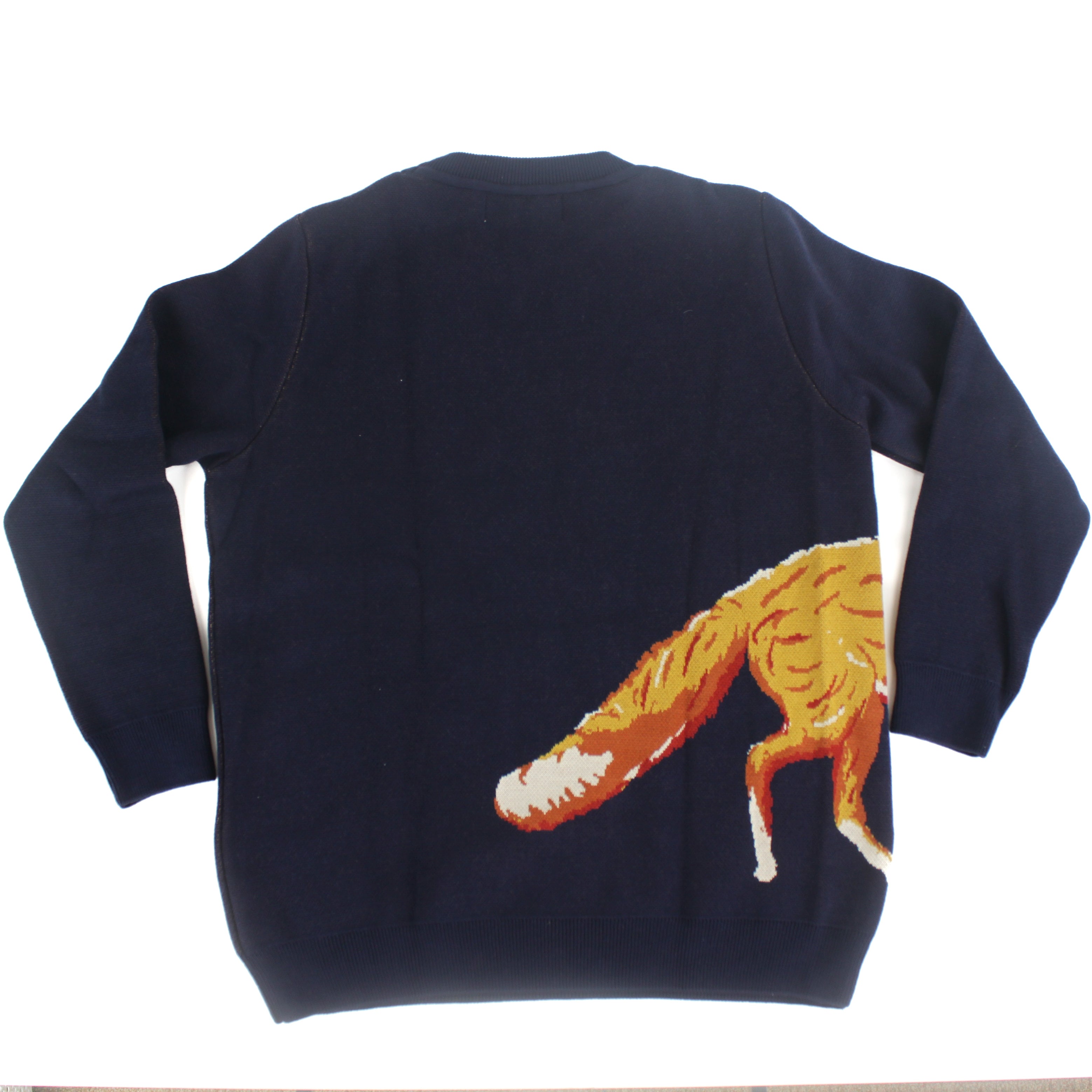Crafted from 100% organic cotton and imported from England, this Cotton Navy Fox Sweater is sure to make you stand out in any crowd. With its clever motif and timeless appeal, it brings just the right touch of charm and warmth to your wardrobe.