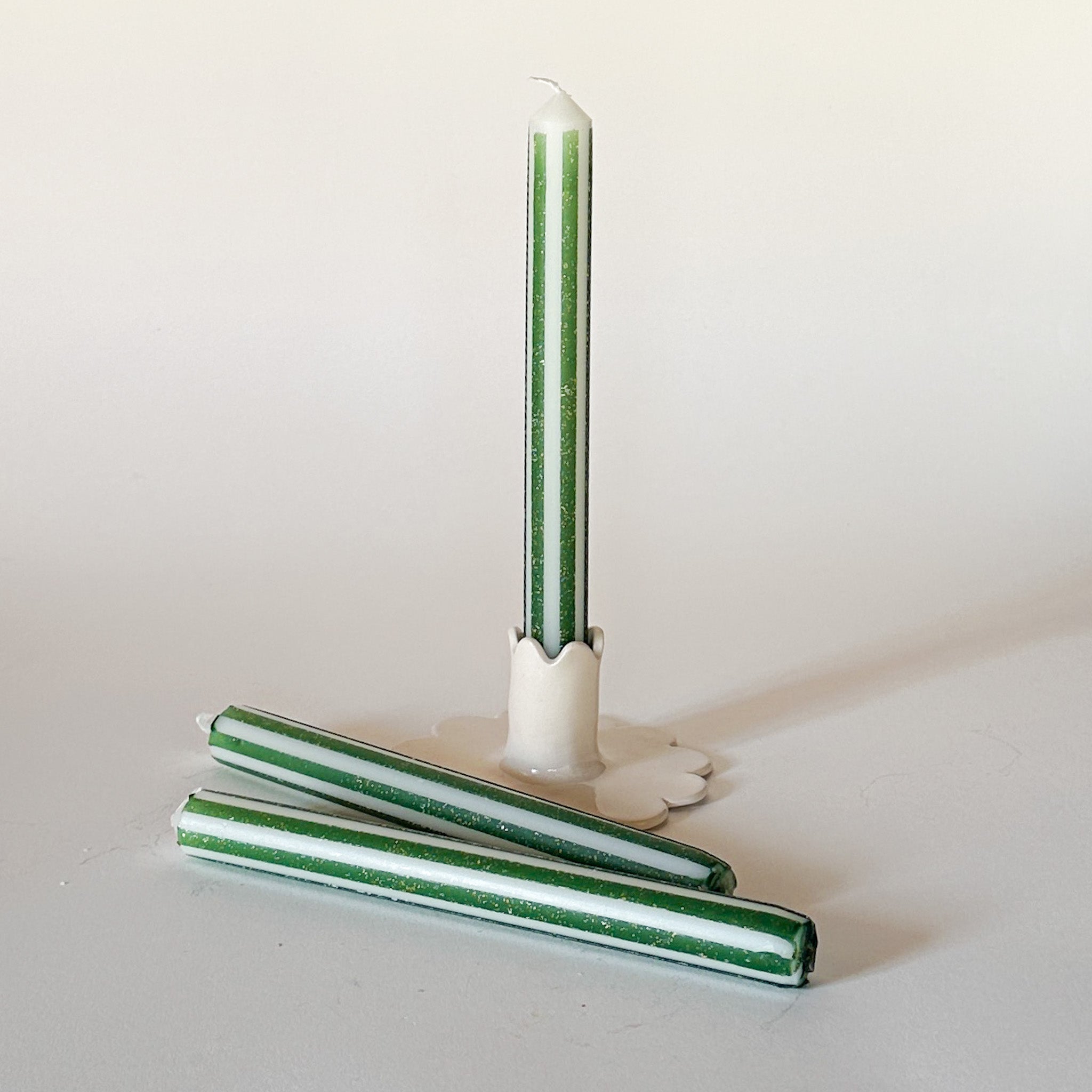 Green/Gold Pinstripes Taper Candles, Set of 3