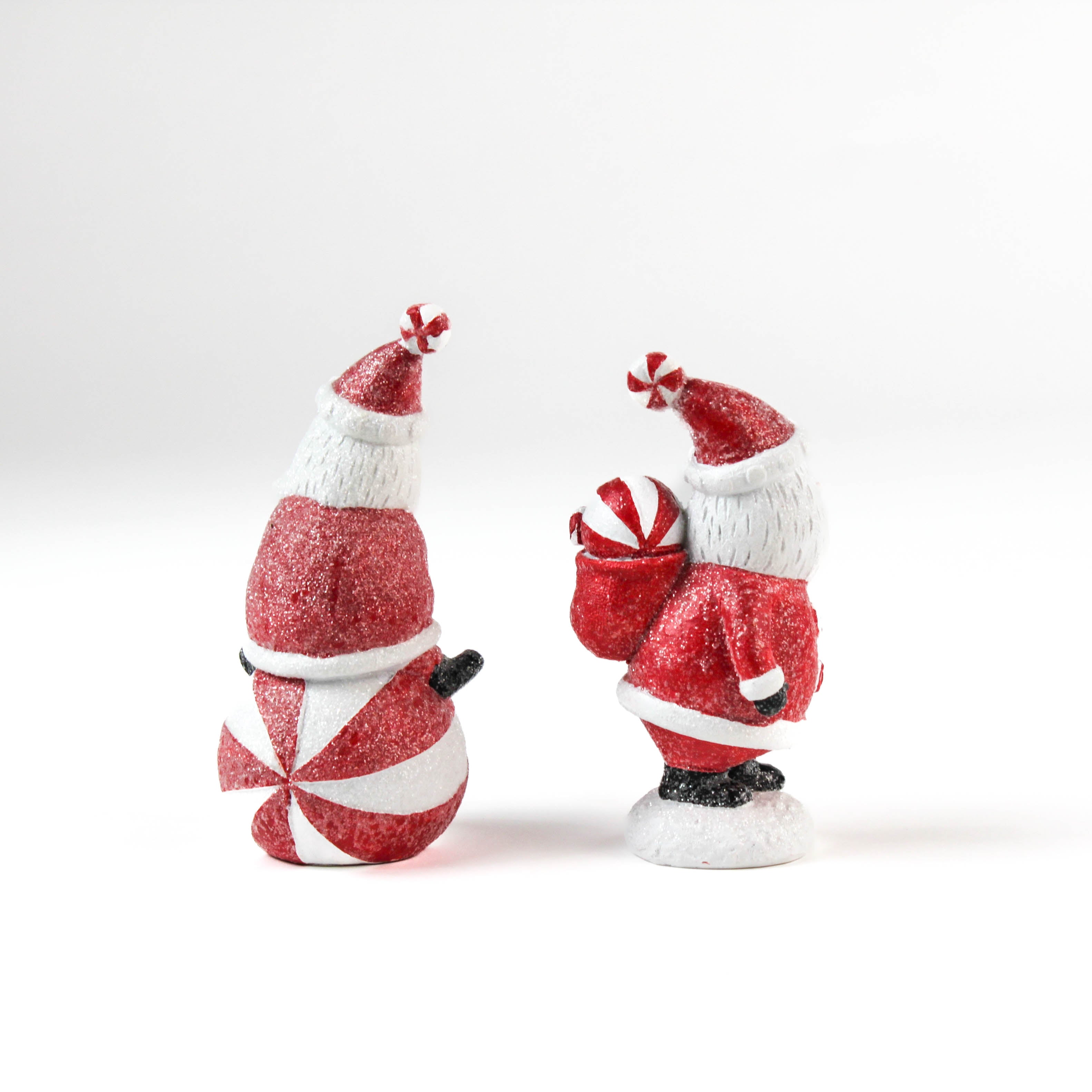Dimensions: 2.75" Round x 6"H (Santa on ball), 2.75" Round x 5"H (Santa with sack)