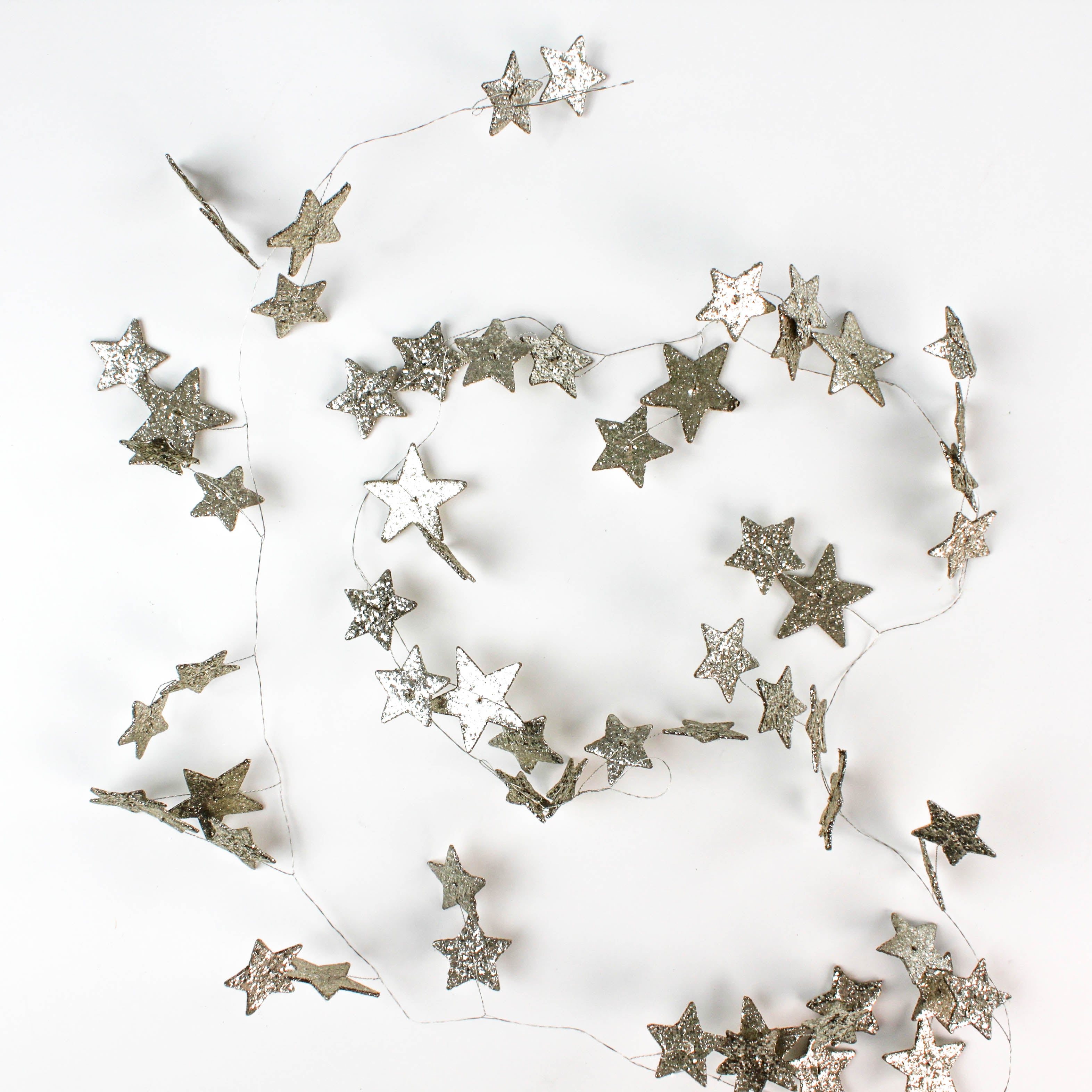 Bring some gilt-driven starry glamour to your Christmas tree, wreath, or mantel with this 6' long, amazing Sparkling Stars Christmas garland in silver, that truly packs a cosmic punch.