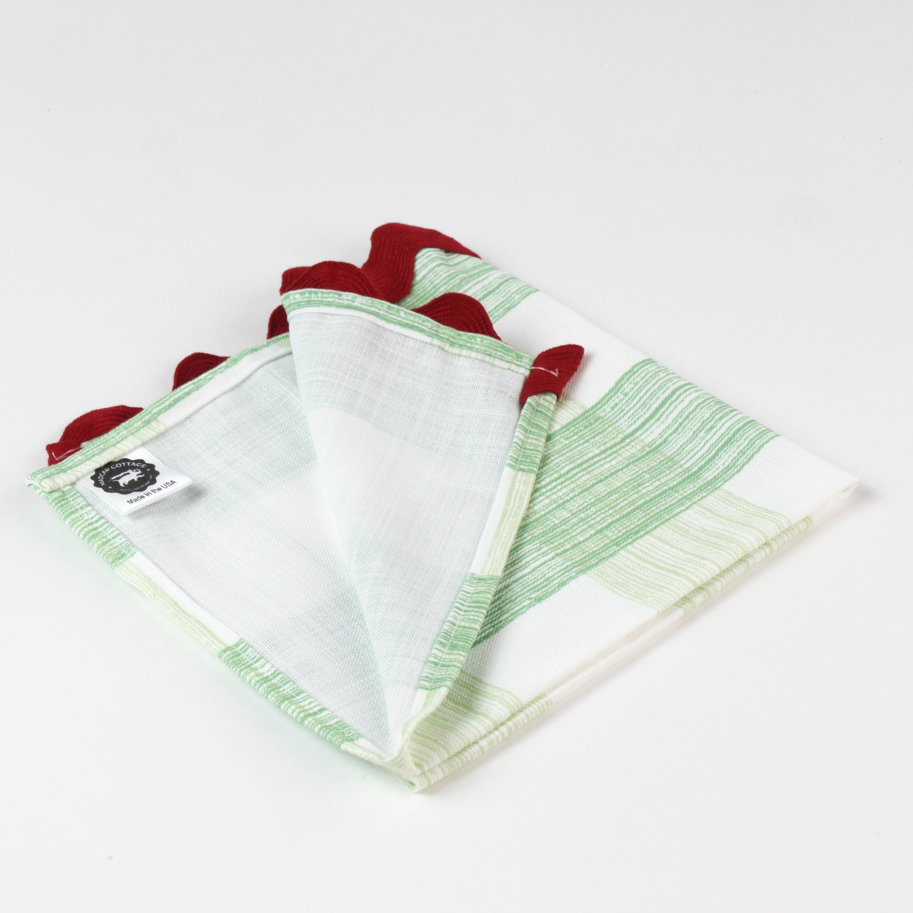 Gin Lane Green Gingham Cloth Dinner Napkins with Ric Rac, Set of 4