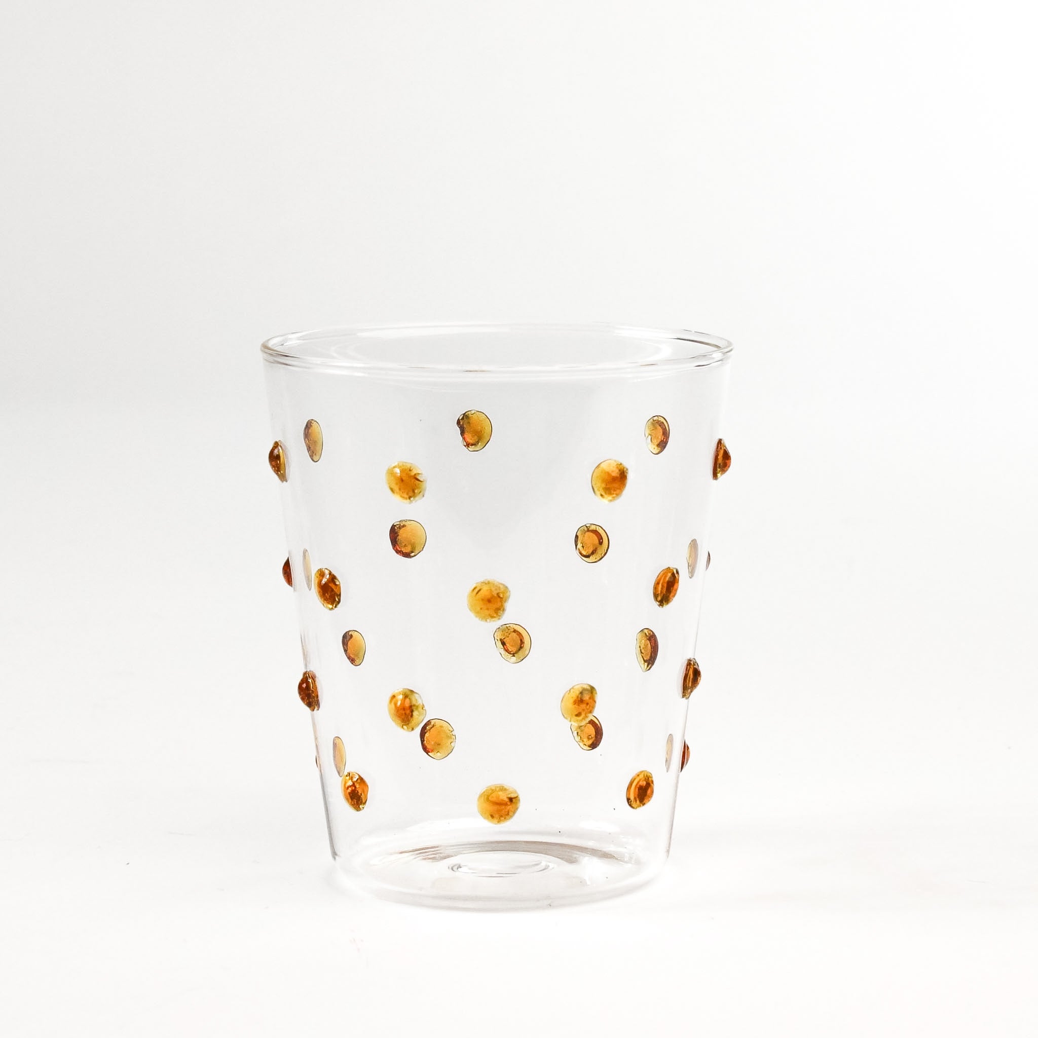 Stunningly crafted, these colorful Raised Dot Drinking Glasses with three-dimensional raised dots in amber, green, red and blue, deliver just right amount of punch and pizzazz. We love to use these stunners to hold rosé wine.