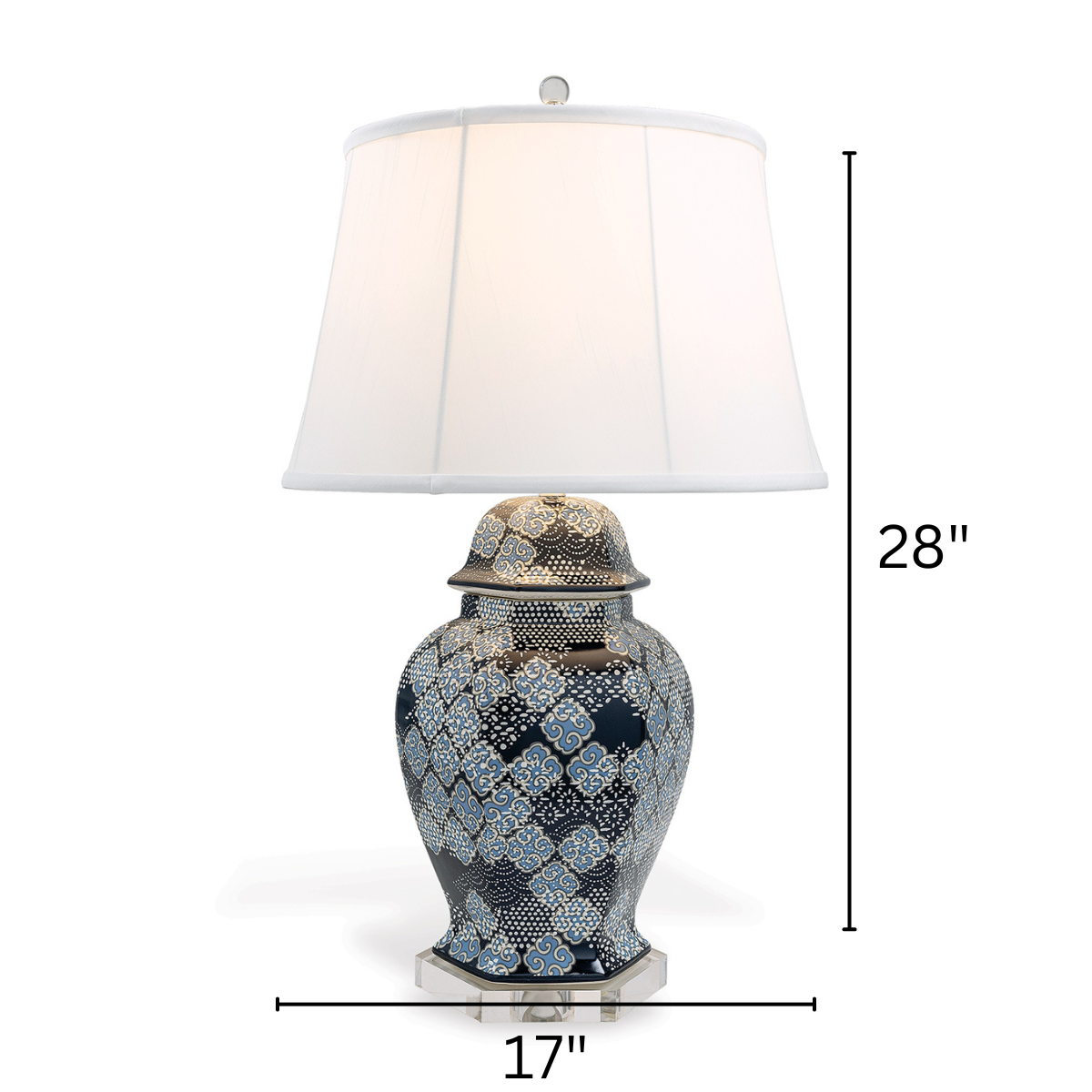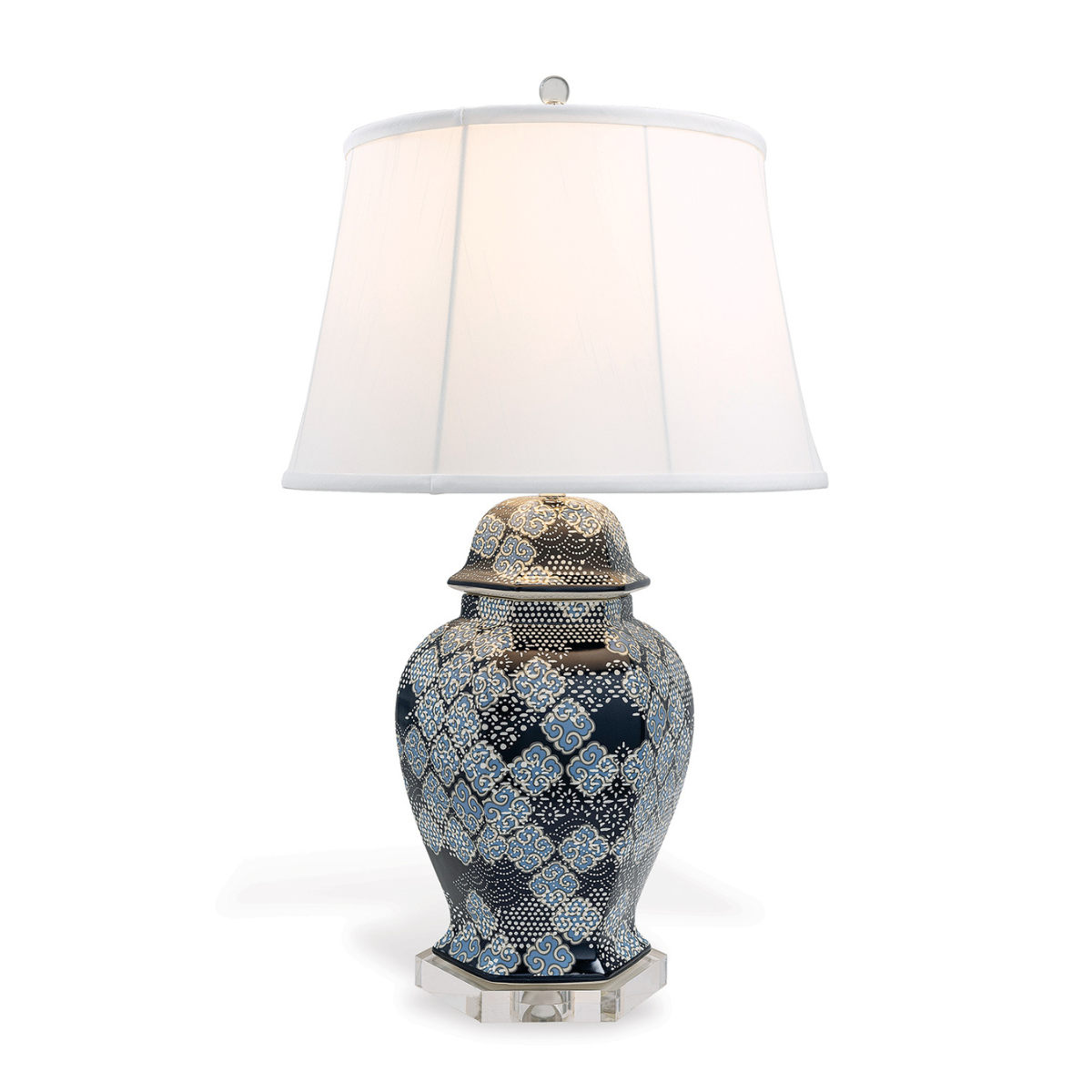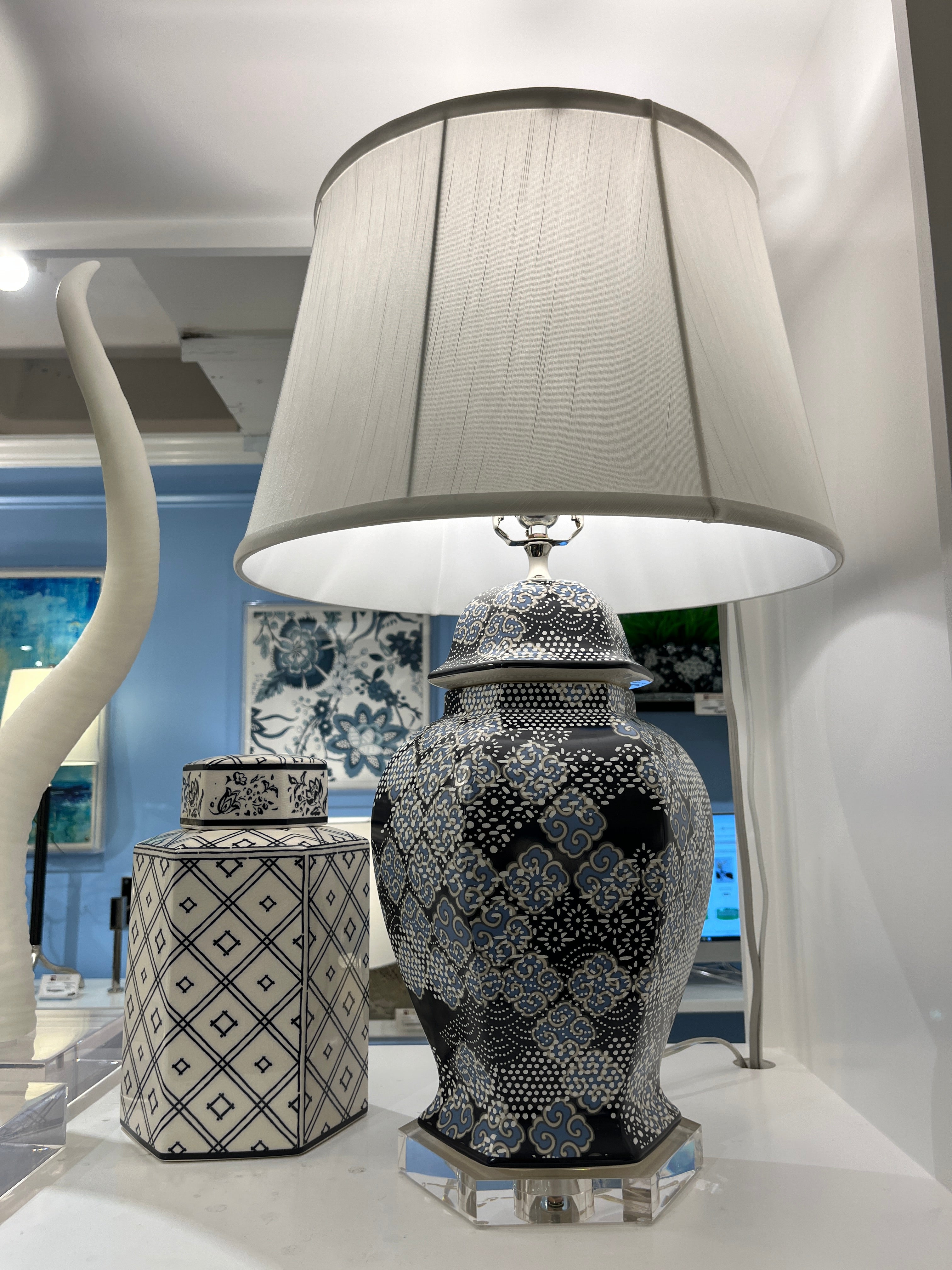 A navy table lamp with a splash of the exotic tempered with nods to a historic past. Cool. Calm. And most certainly collected. A batik-inspired pattern lavishes this exceptional table lamp with timeless good looks that will carry to the shore, the country, the city, and beyond. The Shoal Bay pattern is available as a fabric and wallpaper, too.
