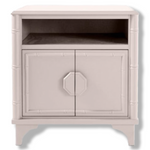 Inspired by the Madcaps’ passion for Palm Beach, Florida, the Lake Trail Side Table boasts faux-bamboo flourishes and a two-door cabinet topped with a petite shelf. Soft-close hinges. Hand-carved wood door pulls. The Lake Trail Night Table can also be used as a convenient side table. Available in Six Standard Finishes or specify any Benjamin Moore, Sherwin-Williams, or Farrow & Ball paint color for your own unique finish. To order this piece in a custom color, Click Here.