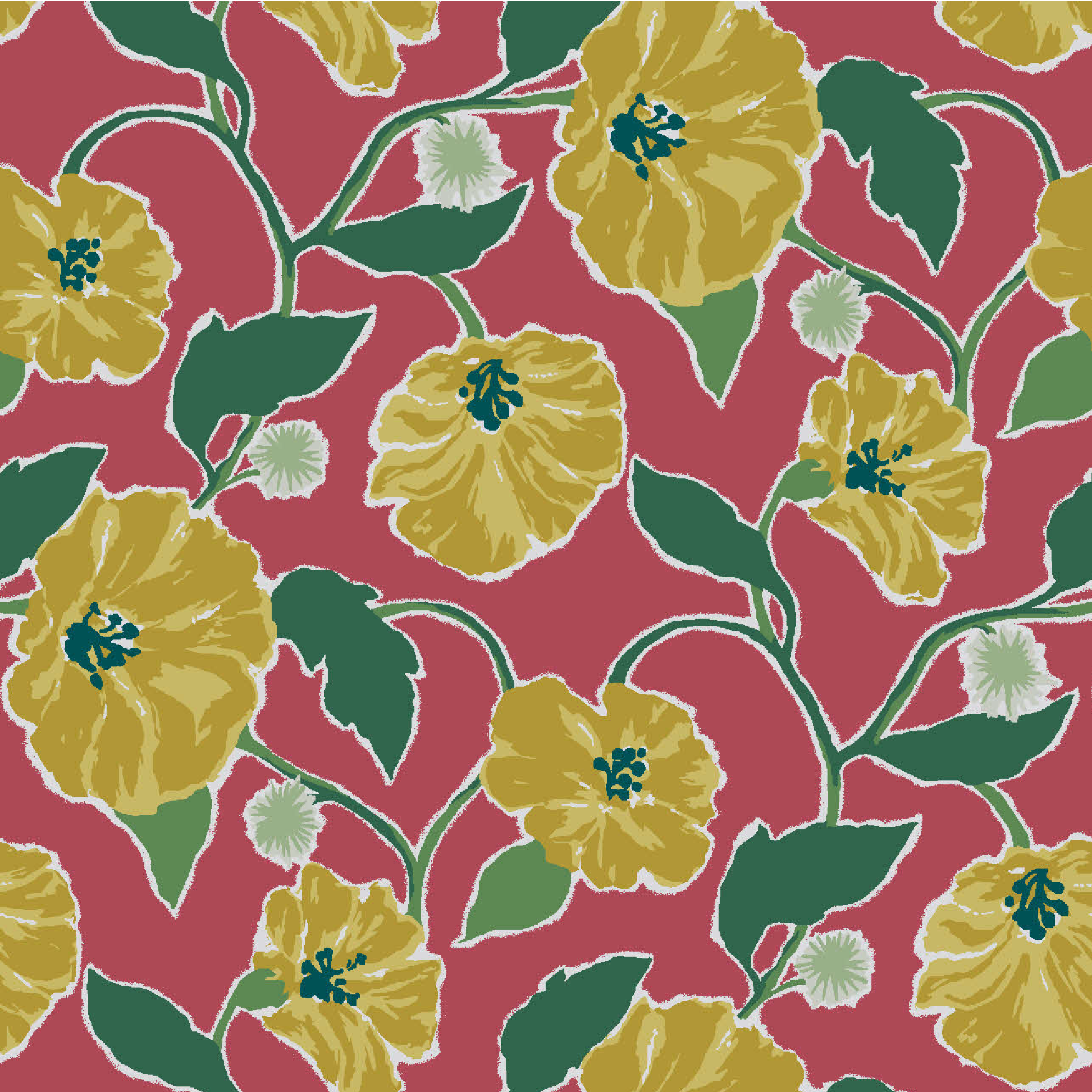 Our Jungle Garden tropical fabric in Strawberry features flowering vines swirling and twirling voluptuously against a dramatically colored background. Moody. Magical.