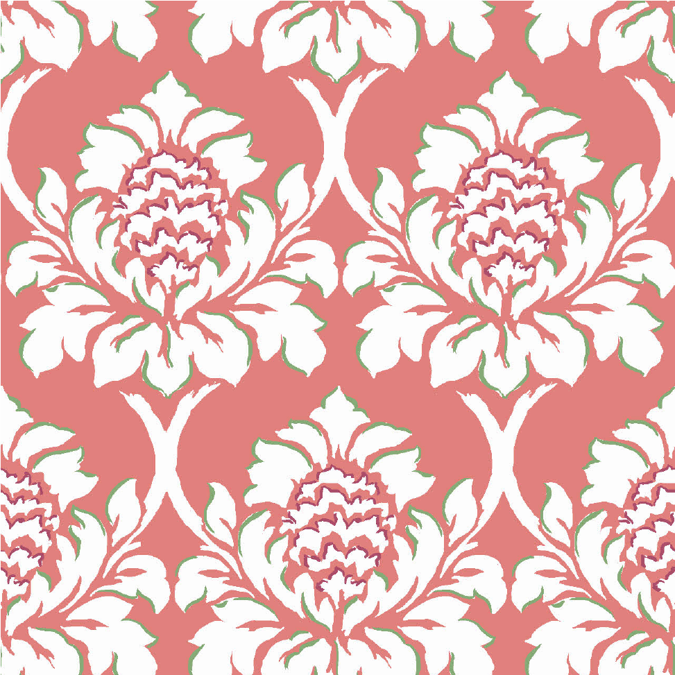 During a visit to a fabled English country estate, John took out his watercolor paints and crafted this gorgeous floral in Rhubarb.