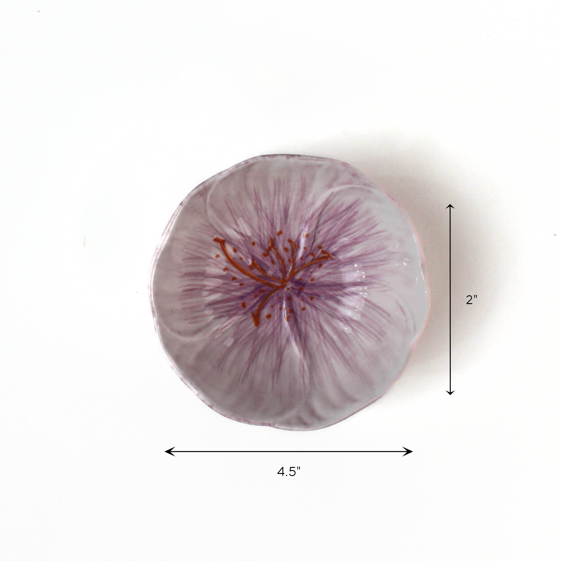 Hand-Painted Purple Ceramic Flower-Shaped Bowl
