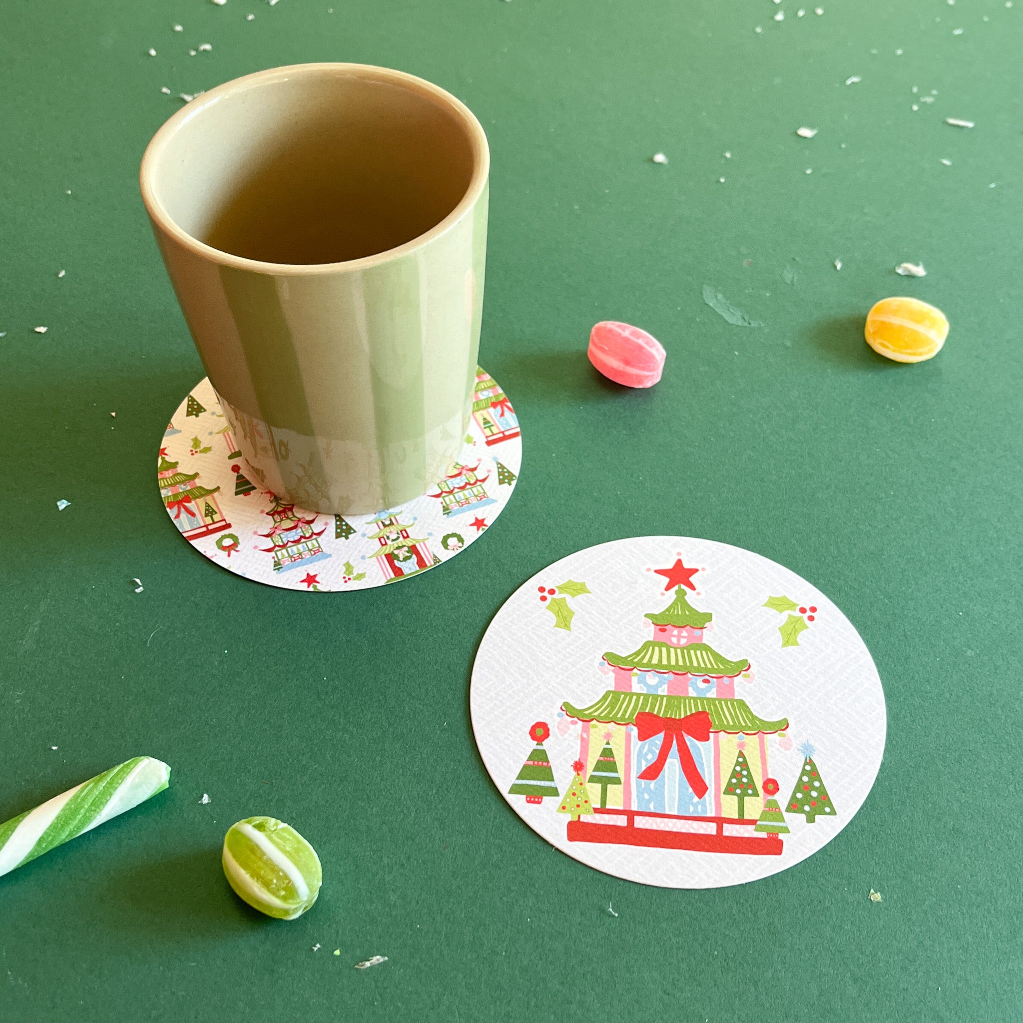 Festive Pagodas Christmas Round Paper Coasters