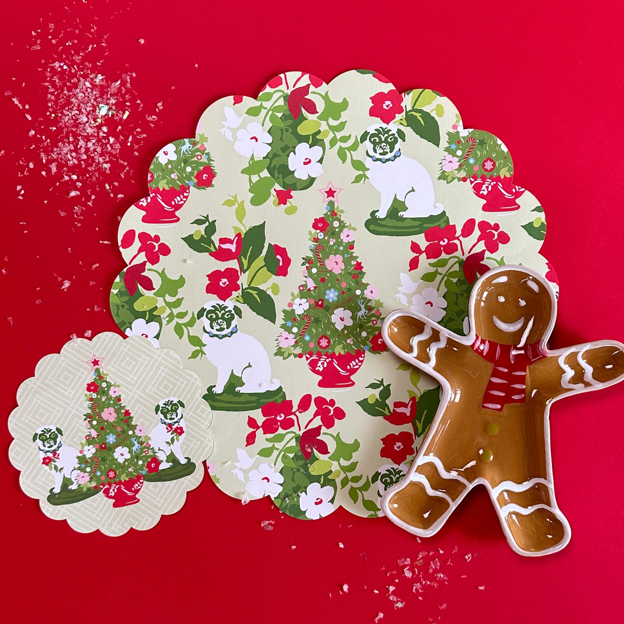 Instantly add a touch of elegance to Christmas cake plates, dessert trays, and sandwich platters with these fun and festive, made-in-America doily sets. Package includes 16 paper doilies (8 large and 8 small) featuring 2 coordinating patterns. A Madcap Cottage exclusive.